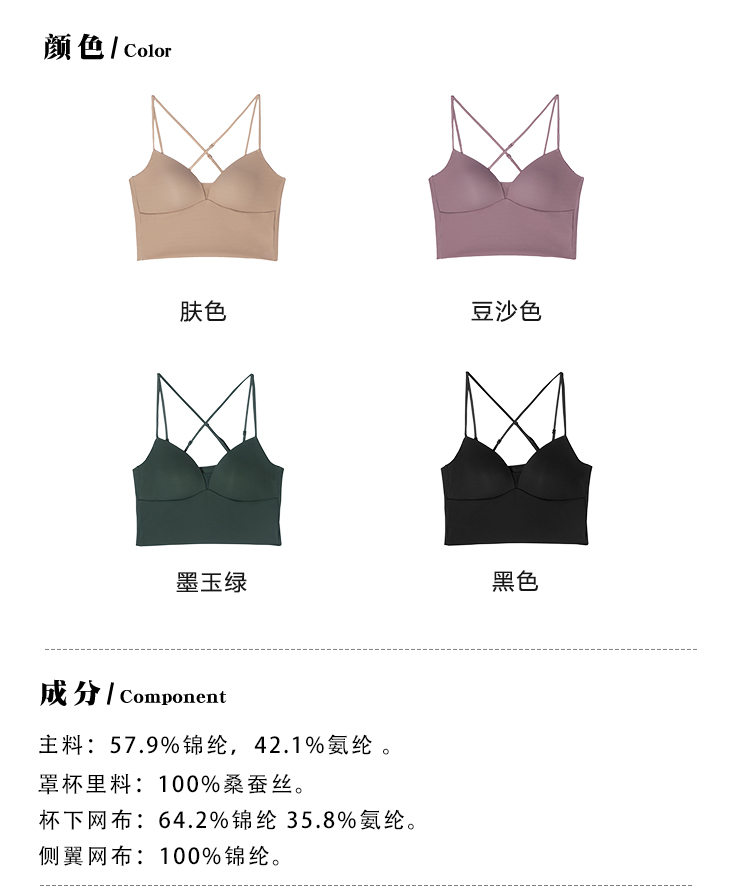 靴下物美背内衣女光面隐形背勾文胸含桑蚕丝无痕无钢圈透气文胸罩
