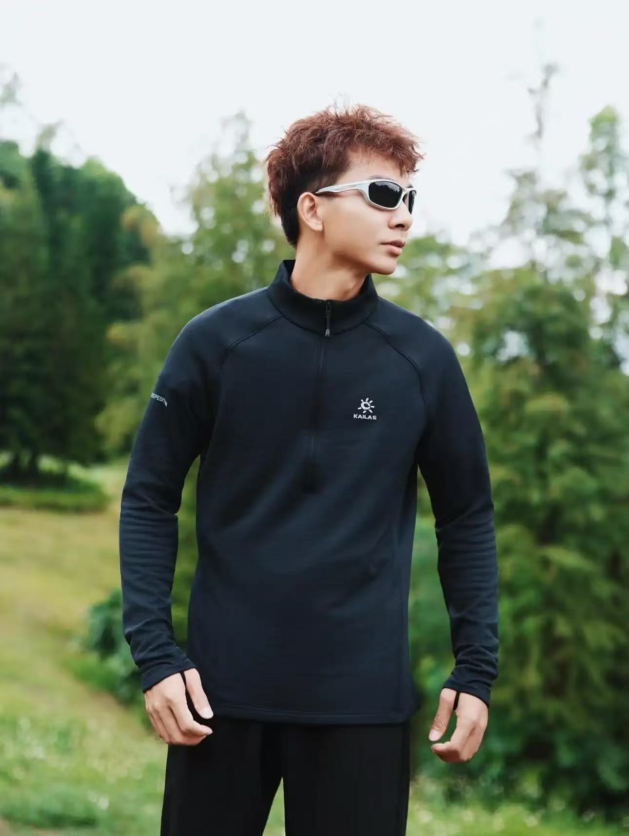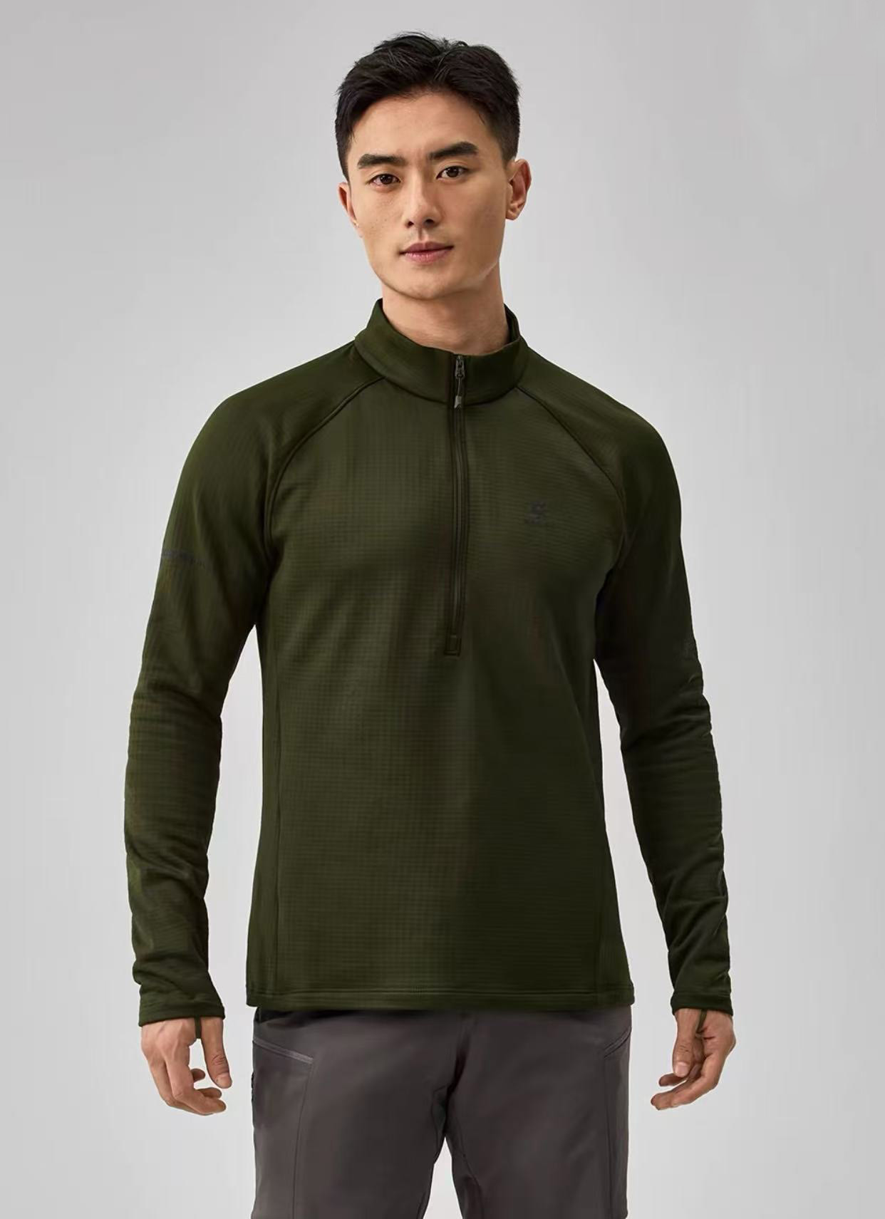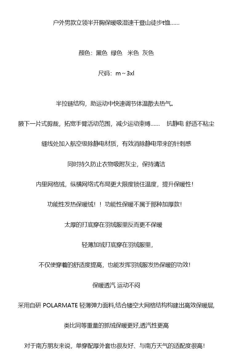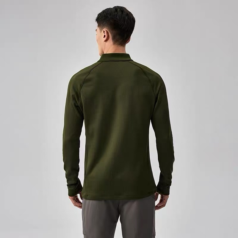 【ss1】男子户外立领保暖速干徒步长袖抓绒T恤!!