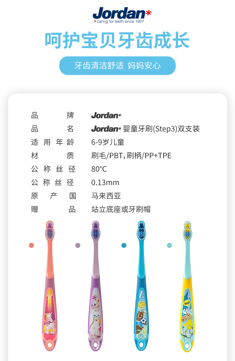 Jordan*婴童牙刷(Step3)双只装( 6-9岁)颜色随机
