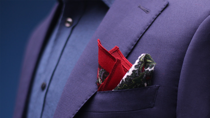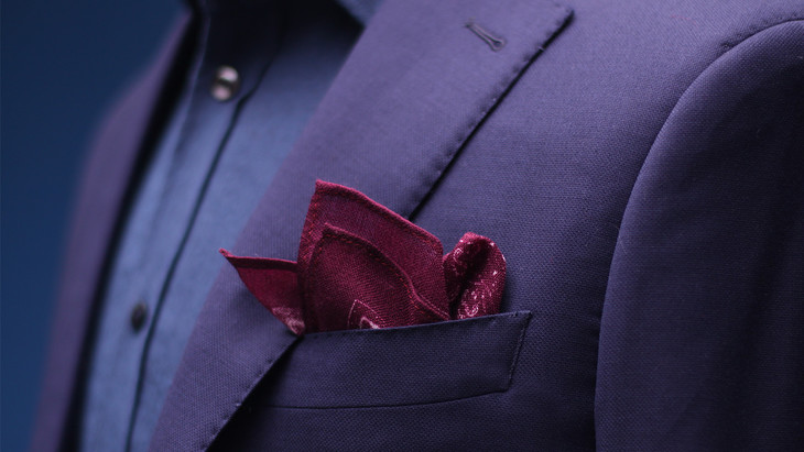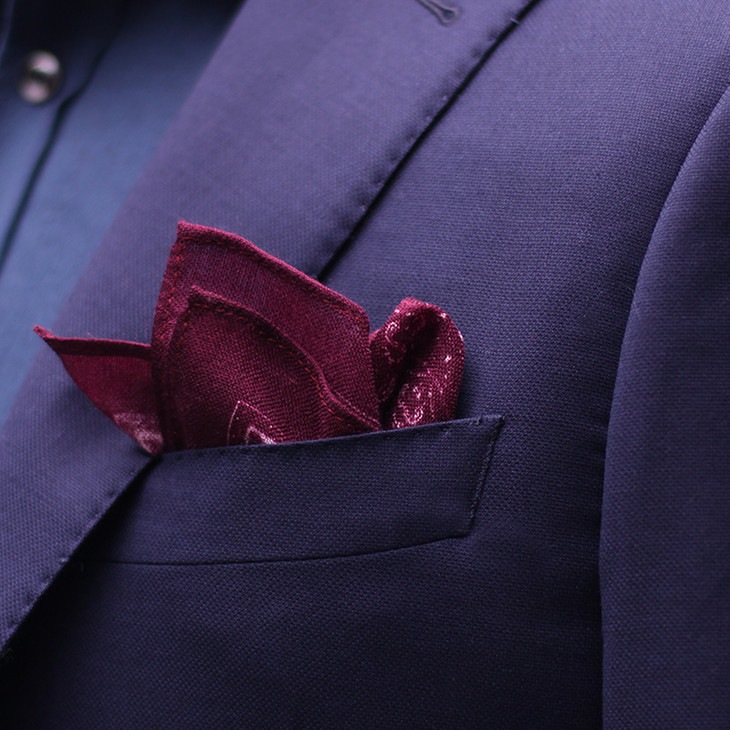 喜欢彩色,下面这款深酒红裂纹口袋巾。