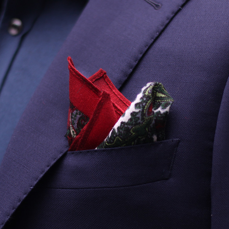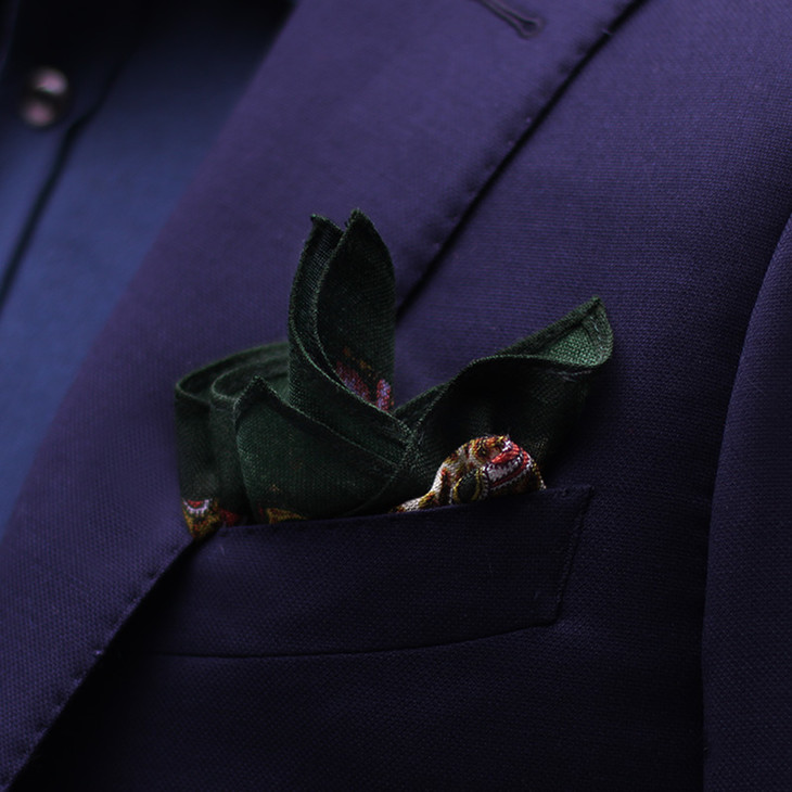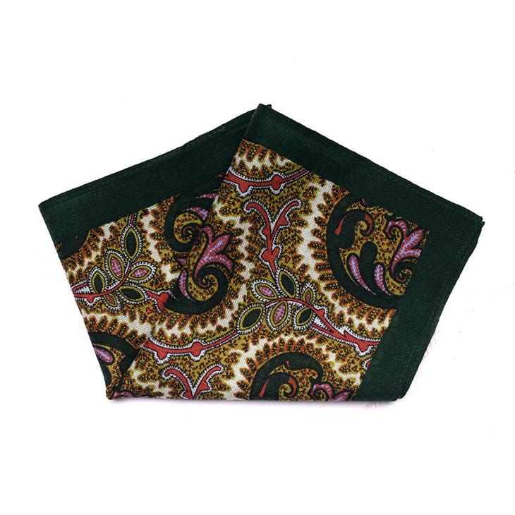 4--墨绿色边佩斯利纹口袋巾