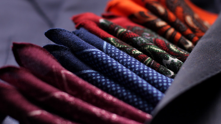 口袋巾,此物早在拜占庭时期就有了了,最初用于宗教仪式,亚麻材质居多(所以即使到现在,白色亚麻口袋巾都是相当正式的,常用来配礼服),到二十世纪时,口袋巾几乎成为绅士必备。