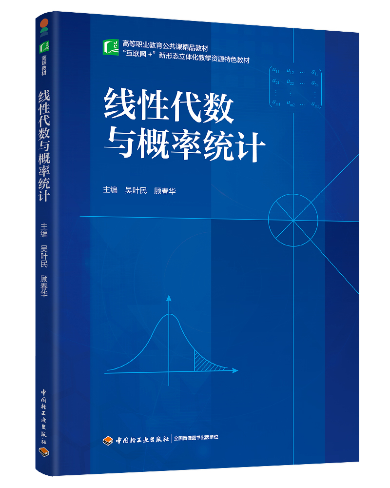 本教材在内容的选择上,根据高职高专教育的培养目标和教学的实际需要,知识的介绍从宽从简,注重讲清概念,降低理论要求,重视应用。在正文第五章和第八章分别展示了线性规划和数理统计的初步应用。在内容的编排上,由浅入深,由易到难,循序渐进,符合学生的认知规律和接受能力。根据高职高专各专业对《线性代数与概率统计》的基本要求,贯彻“理解概念、强化应用”的教学原理,注重与实际应用联系较多的基础知识、方法和技能的训练,不追求过分复杂的计算和证明。注重培养学生的数学应用能力和软件计算能力,把知识点结合实际应用案例进行讲解,能更好地使学生形成数学建模意识,培养数学建模能力,并且通过Matlab软件的使用,真正提高学生应用软件计算的能力。本教材具有配套的学习通线上课程,经过多年线上教学实践的检验,具备丰富的微课、课件、作业、测验等课程资源,非常方便开展线上线下混合式教学。