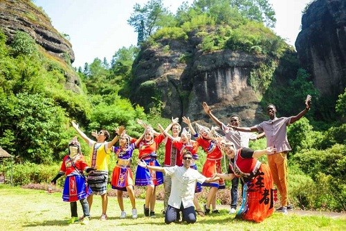 09:30 在此我们放松心情,回归童年体验一把畲族儿童六一之乐(跳竹杆、赶野猪、摇锅、稳凳、蹴石磉),体力好的还可以登顶东西岩观赏雄伟奇特的丹霞山水