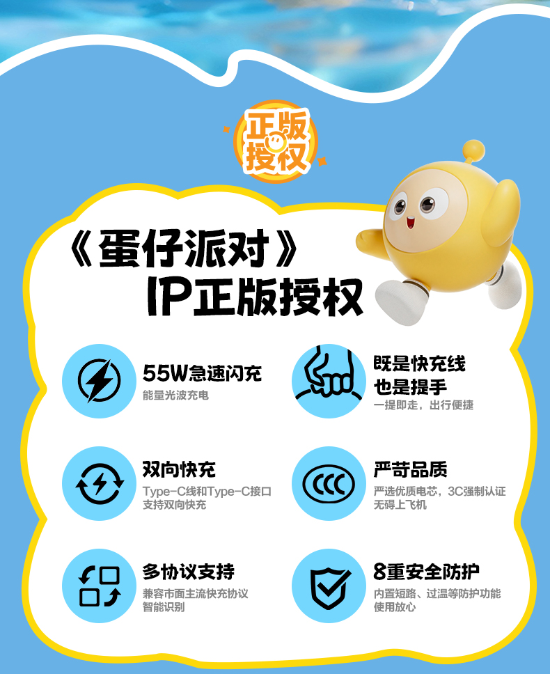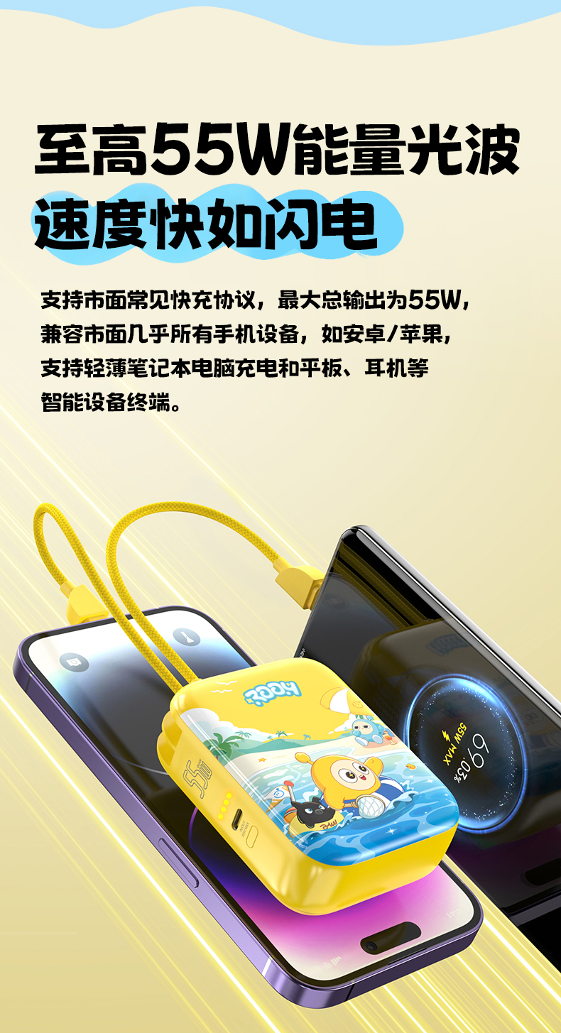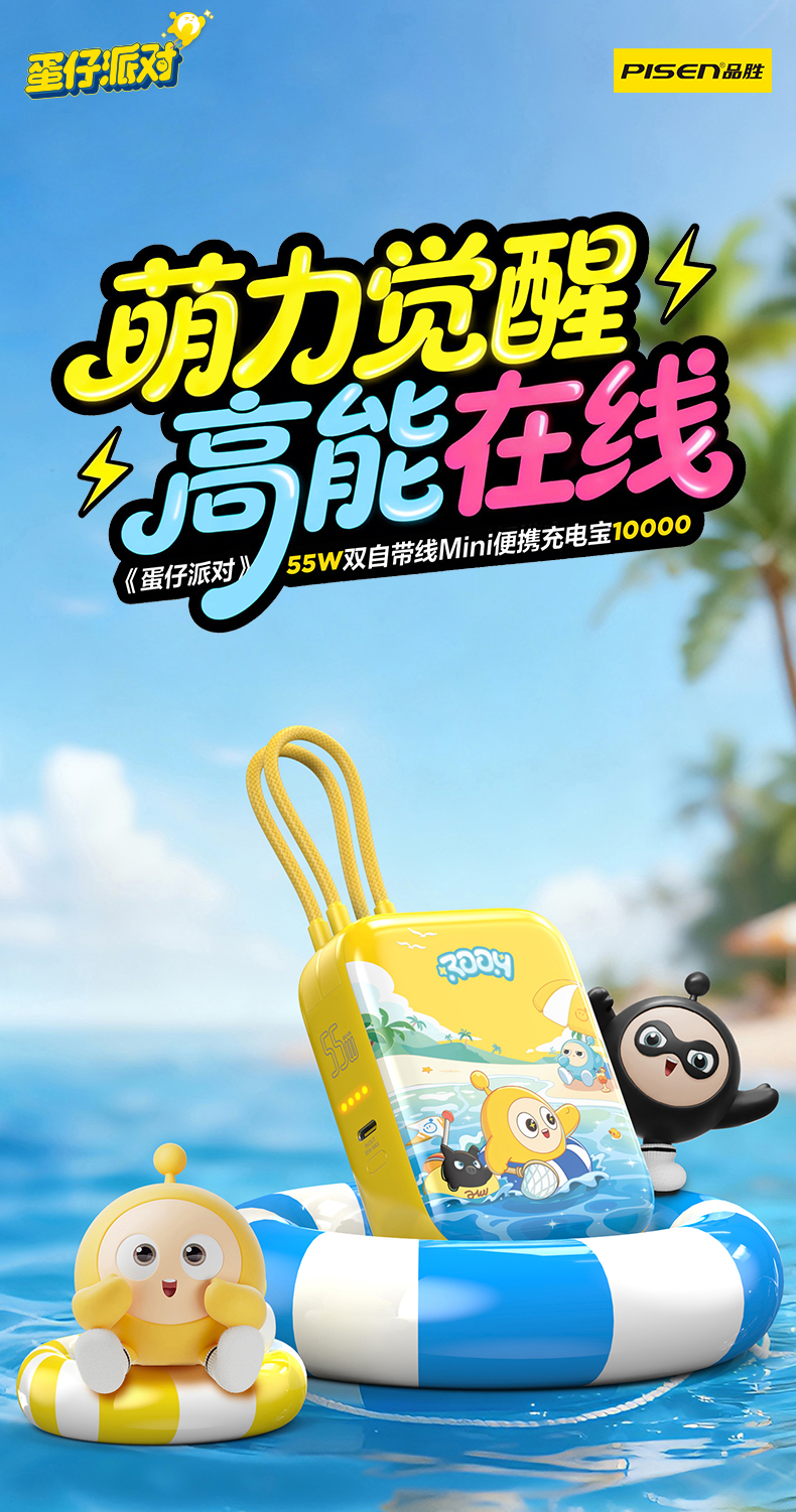 品胜 《蛋仔派对》55W双自带线Mini便携充电宝10000毫安 移动电源支持快充苹果华为/小米荣耀通用