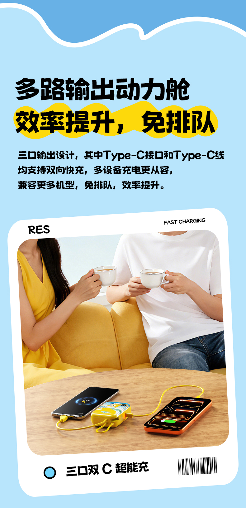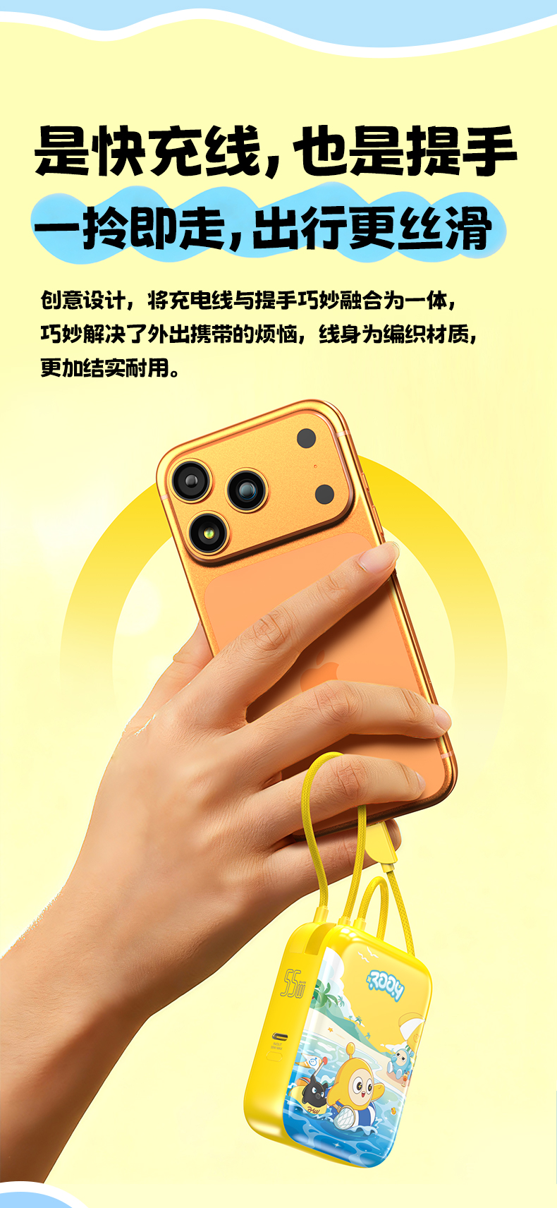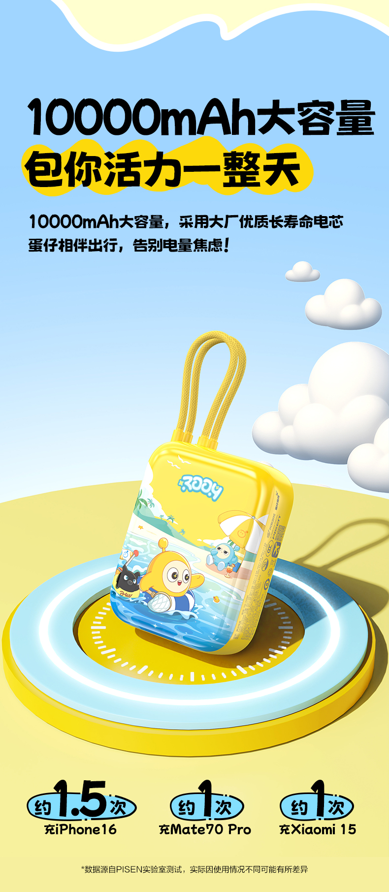 品胜 《蛋仔派对》55W双自带线Mini便携充电宝10000毫安 移动电源支持快充苹果华为/小米荣耀通用
