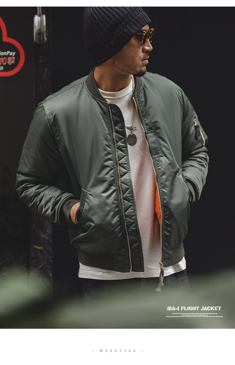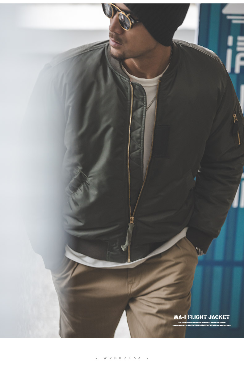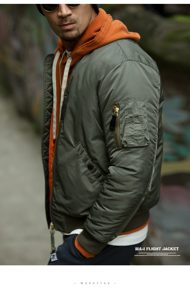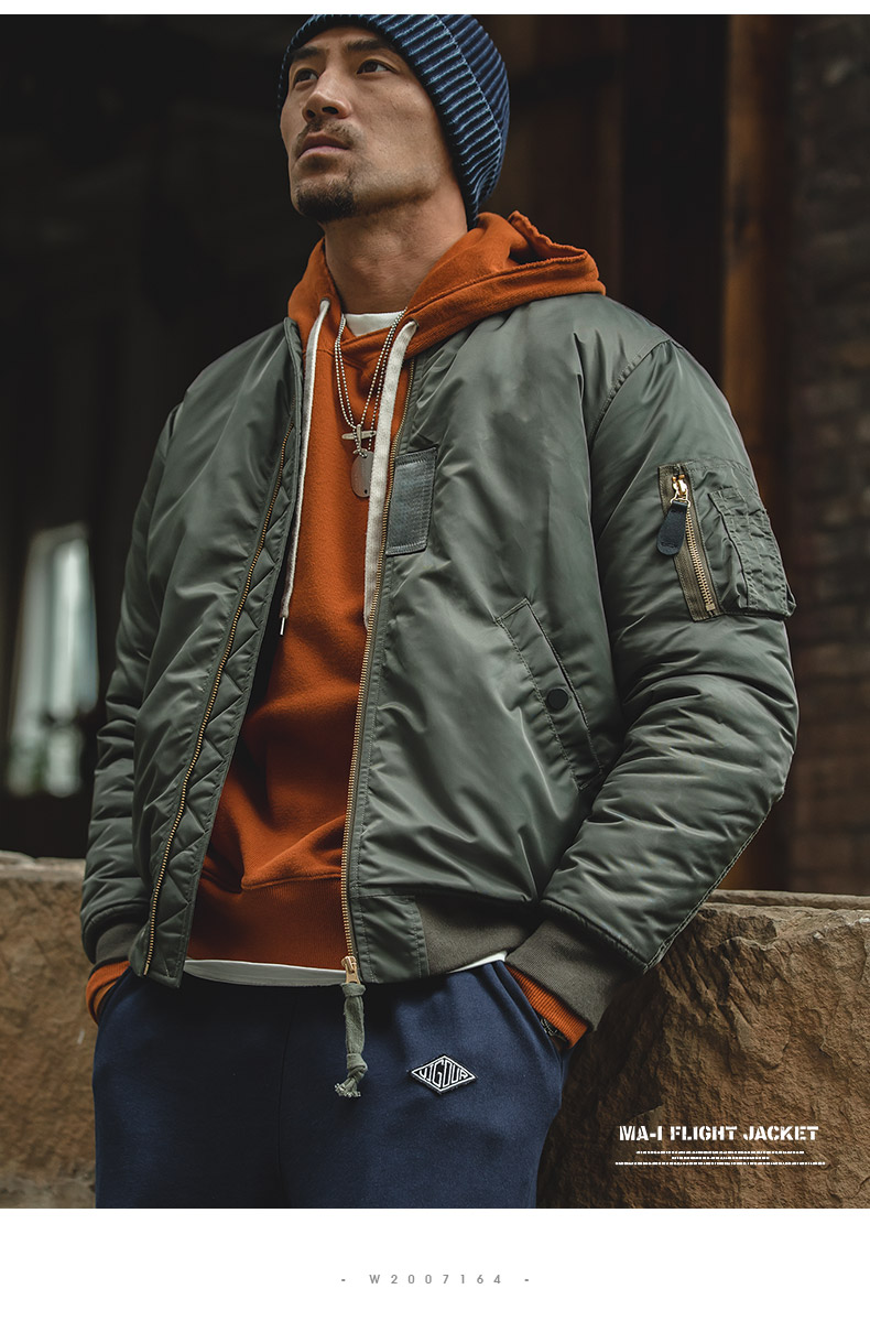 马登工装 美式复古二战军绿色MA-1飞行夹克短款保暖加厚棉衣男潮