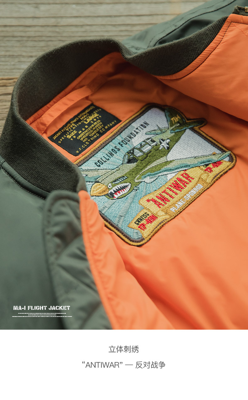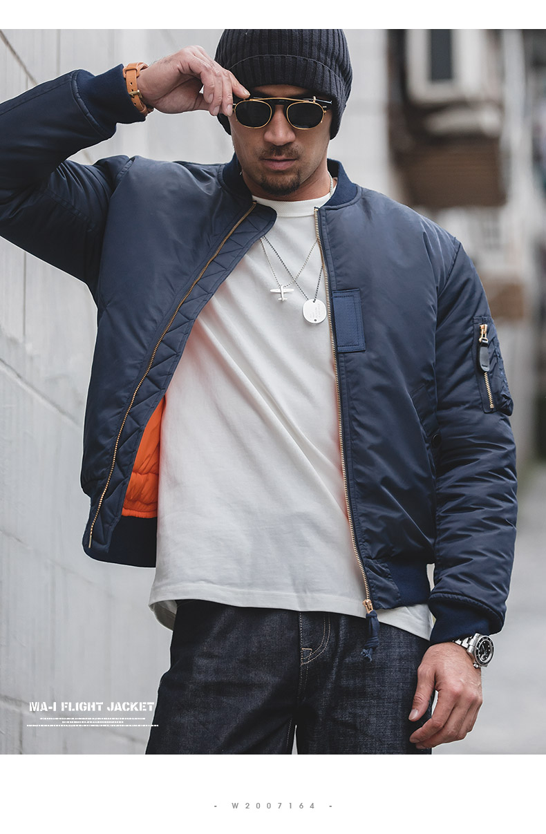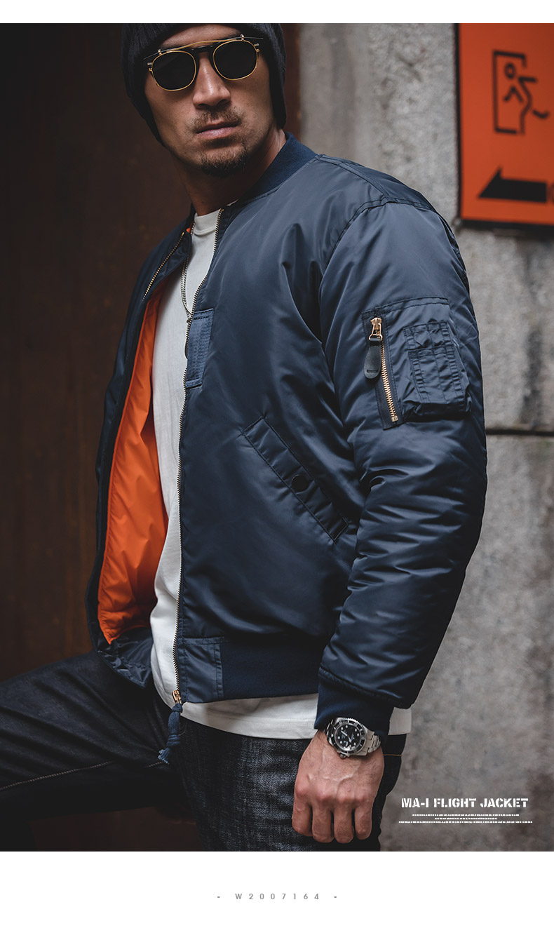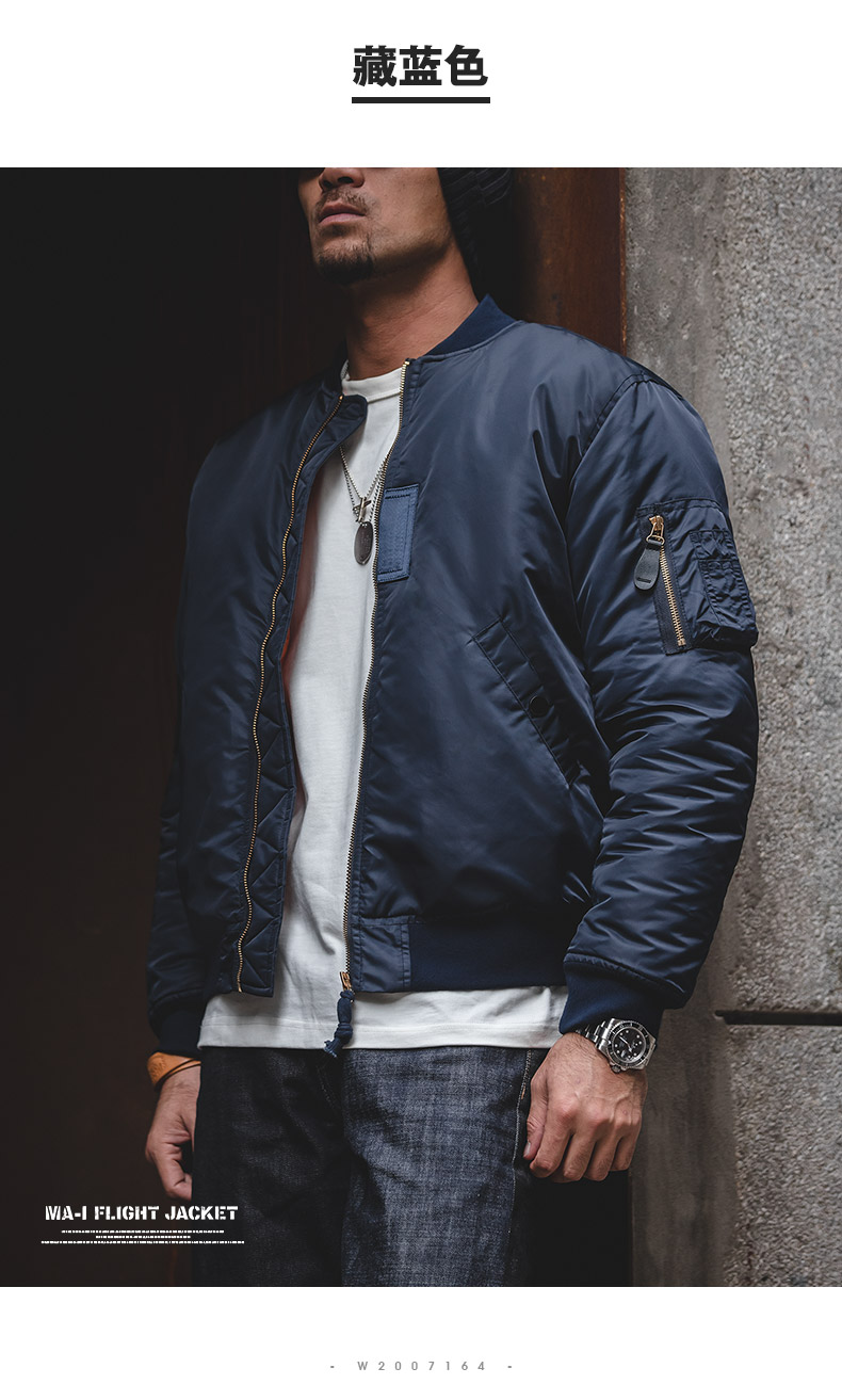 马登工装 美式复古二战军绿色MA-1飞行夹克短款保暖加厚棉衣男潮