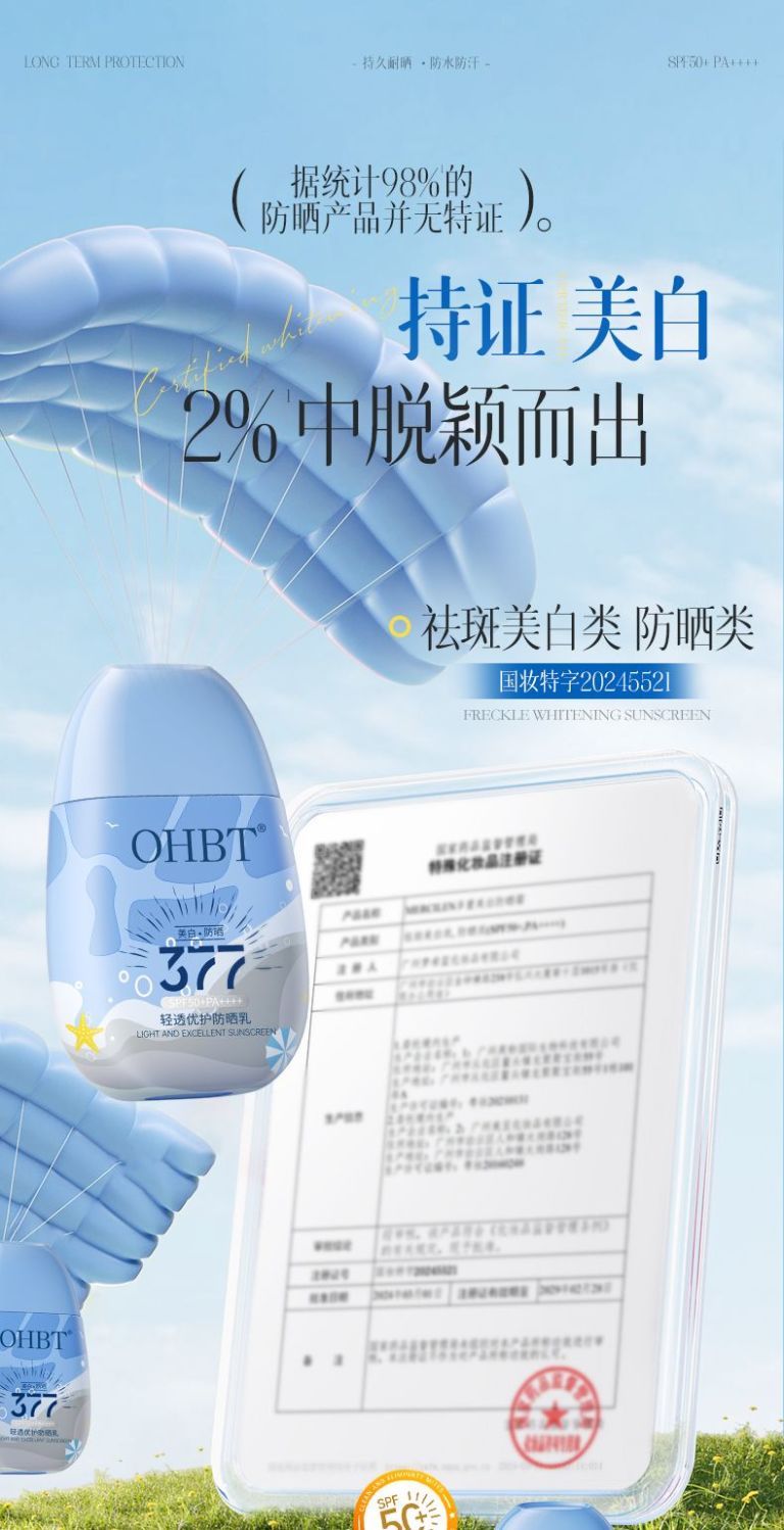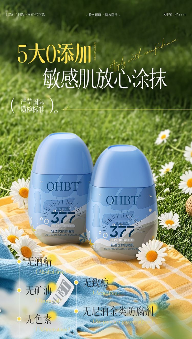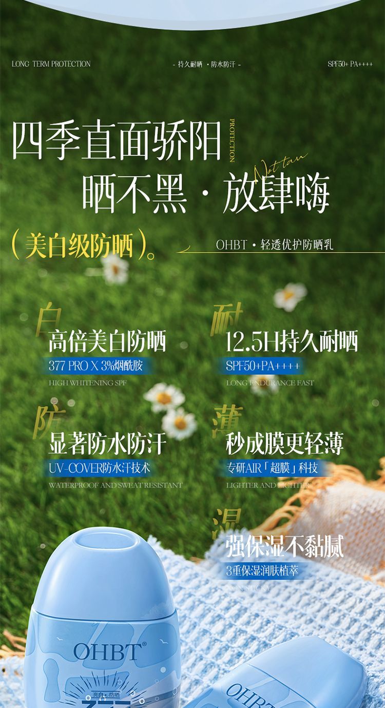 OHBT美白防晒霜热销女清爽不油腻50倍防紫外线