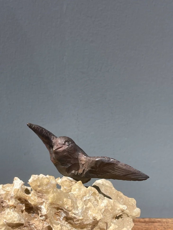 此件柏木雕翱翔老鹰把玩件,尺寸不大,构图塑型独特,不藏刀峰豪迈形雕塑艺术感强,手握尺寸经长年把玩仍然保存完好殊属难得,表面油润绵柔,边沿之磨损压痕自然优美,木面纹路清晰优美,以如此高貴珍希的柏木雕琢把玩件,气质高雅过人。