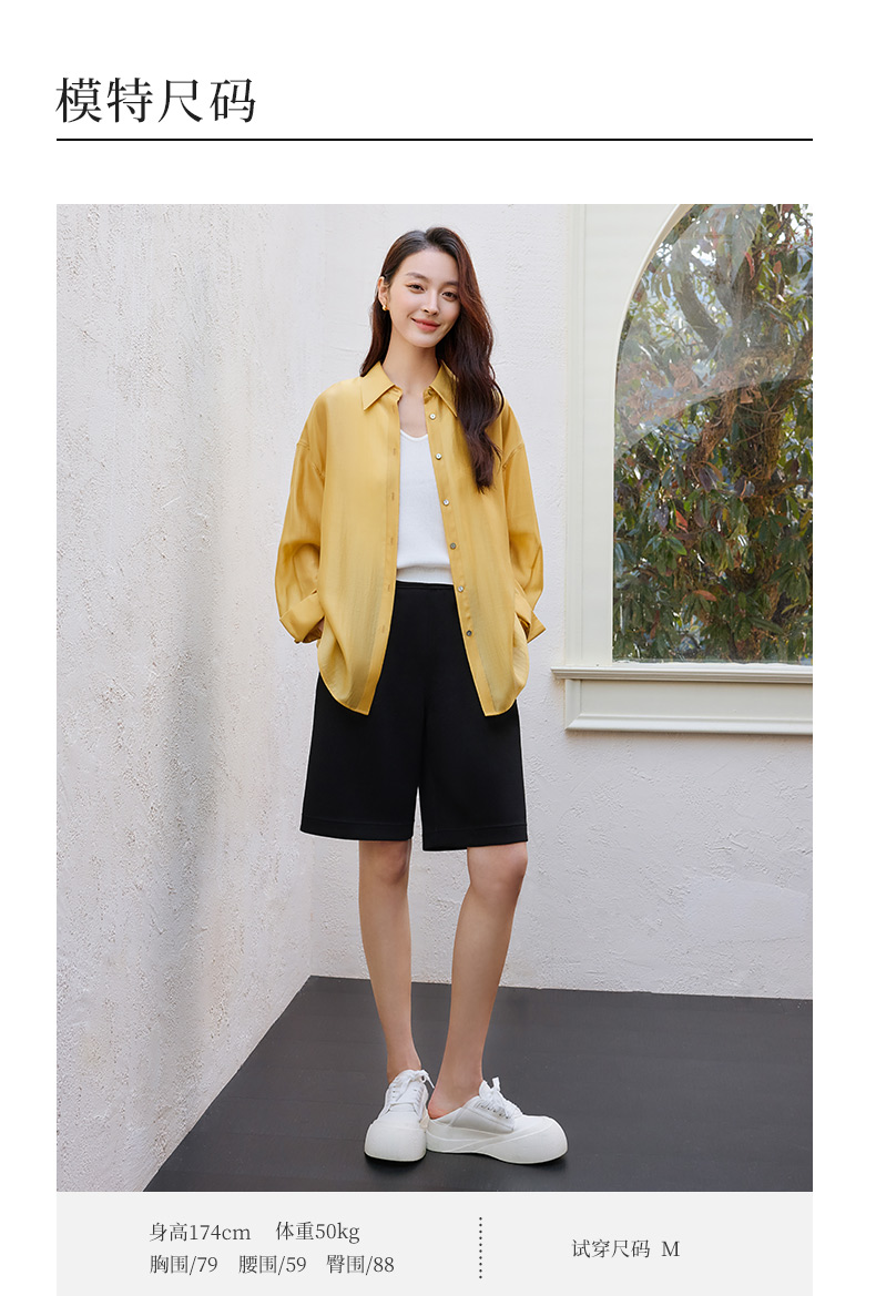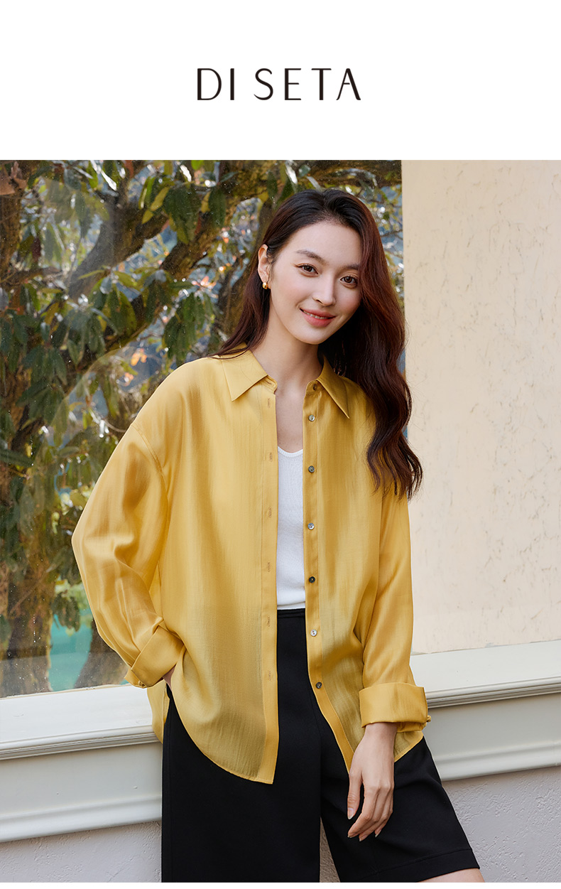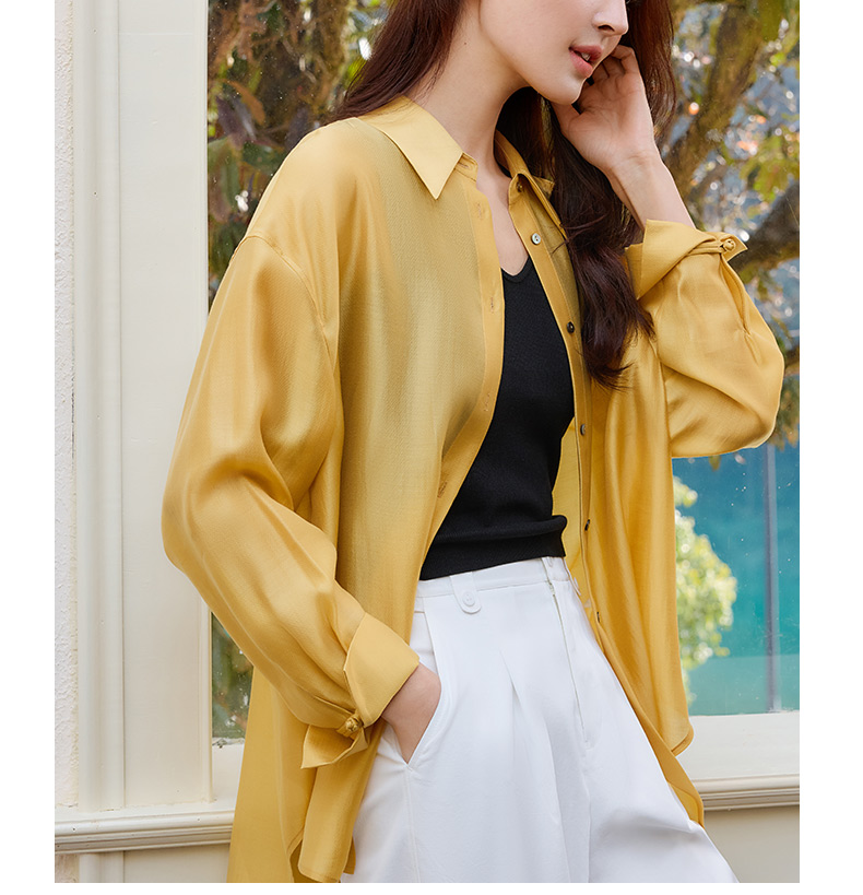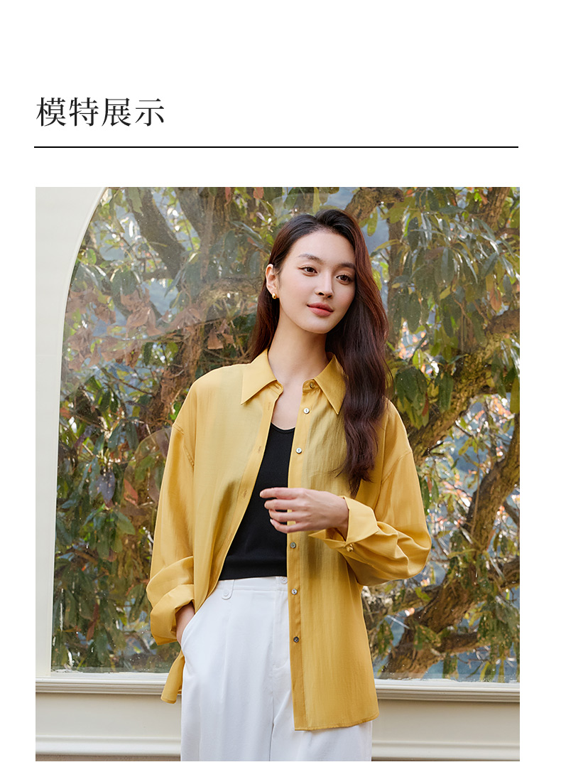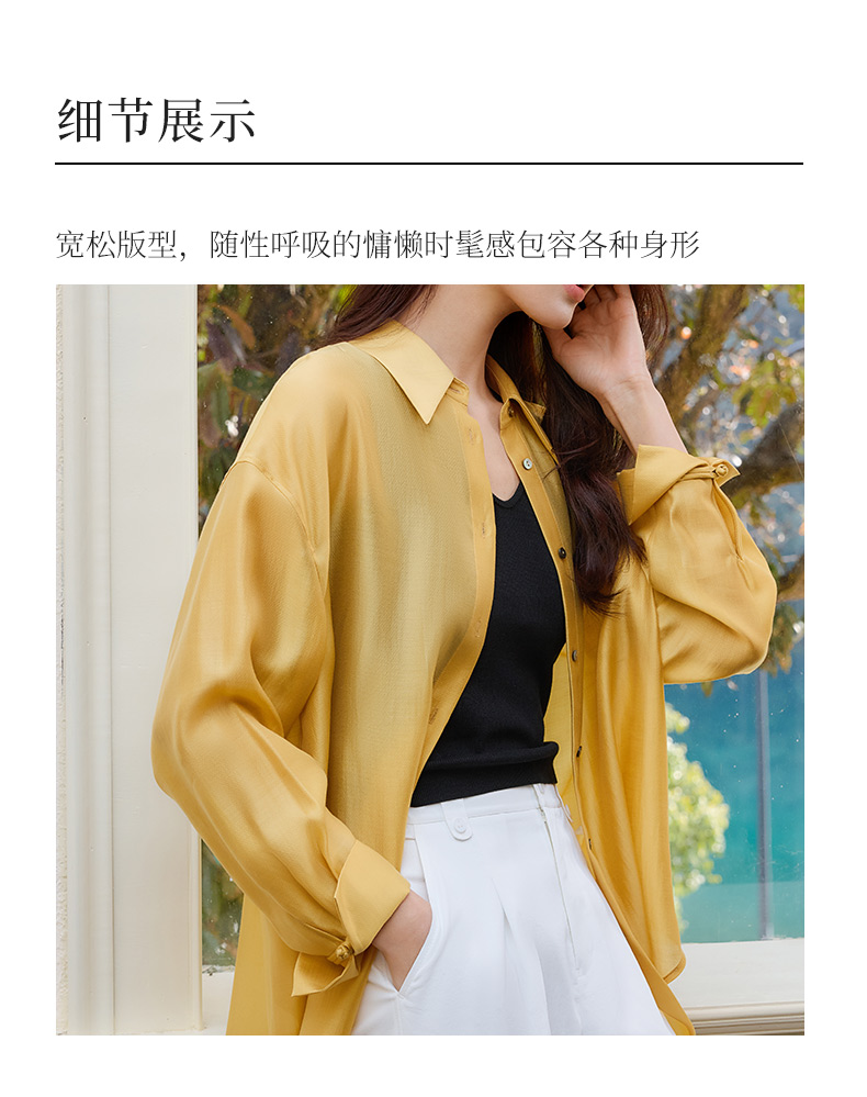 玳莎宽松天丝衬衫女士2025年夏季新款纯色轻薄休闲慵懒风落肩上衣 FB31301