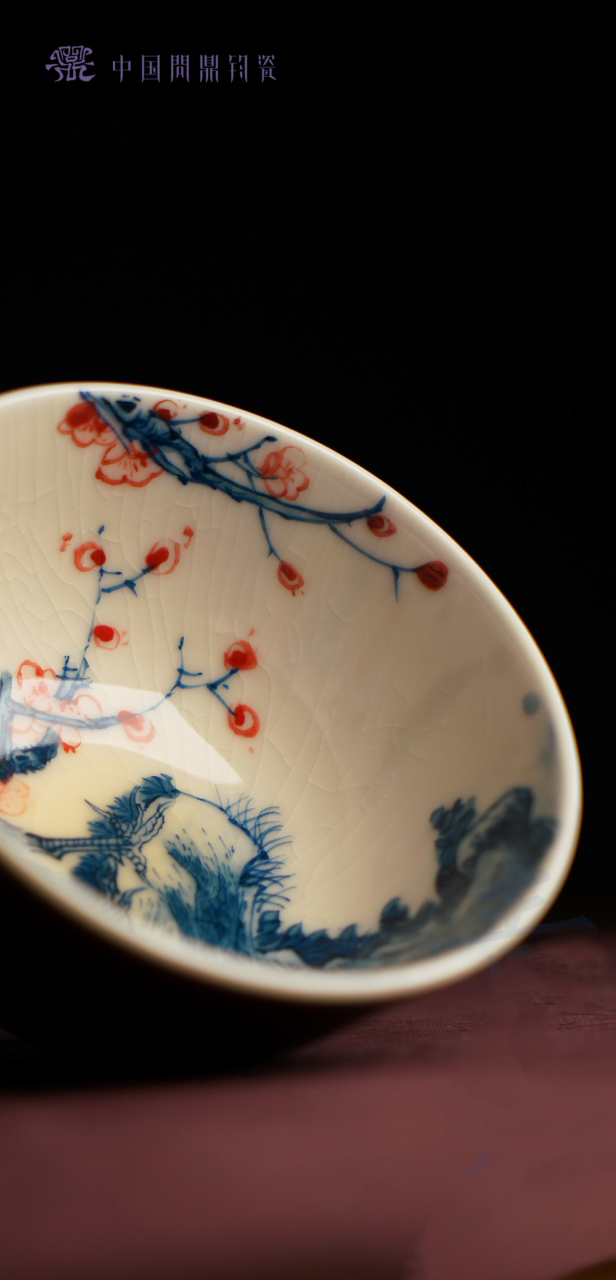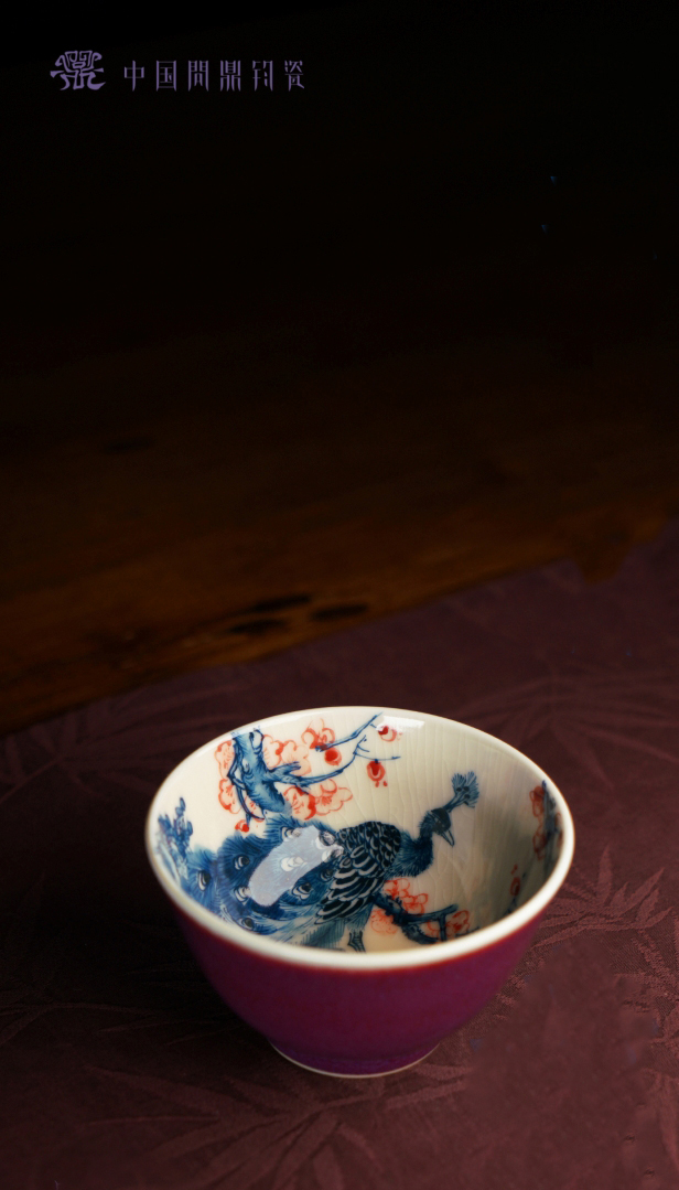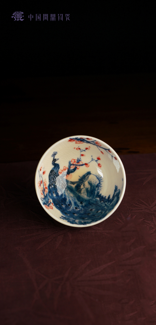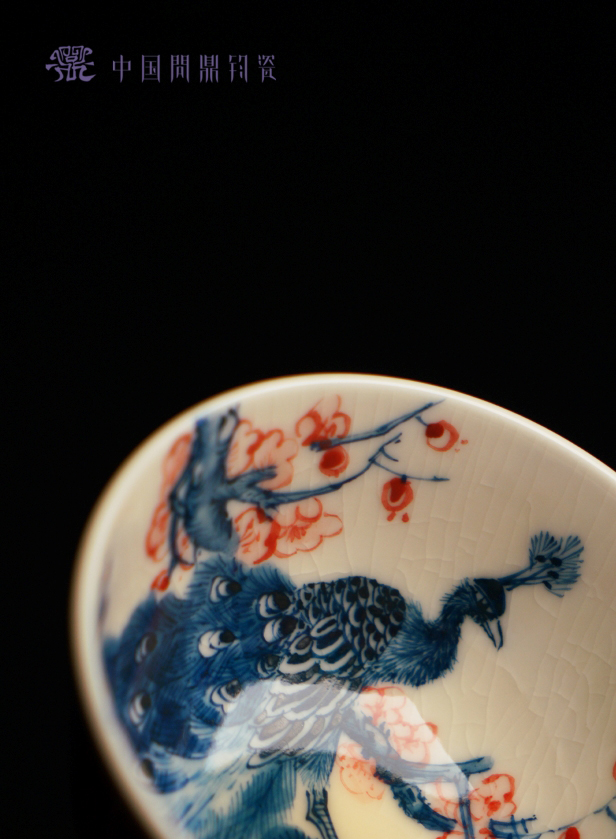 问鼎钧瓷鹅黄青花赋星杯(孔雀红梅)(缺货)