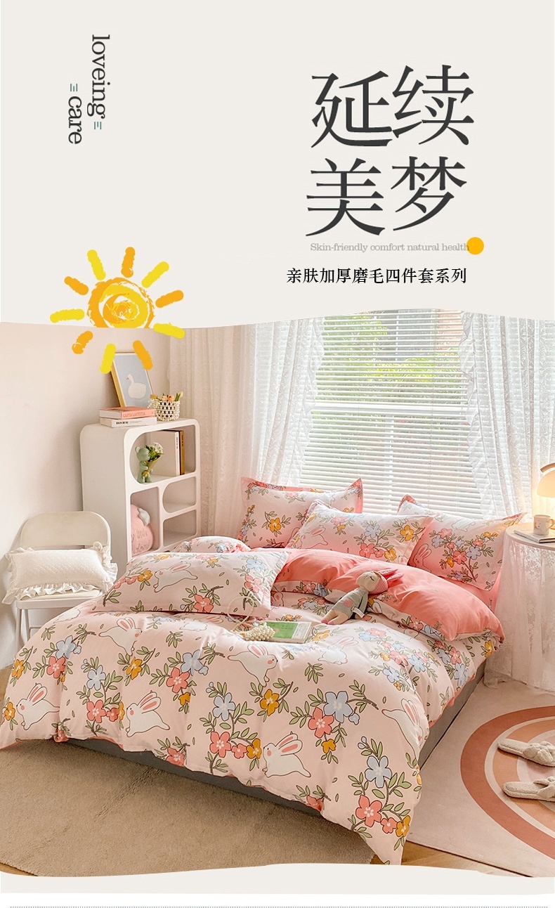 【冬季磨毛 超值特惠】Miss lolo 新款40S磨毛四件套 吸湿透气 亲肤细腻 多款可选