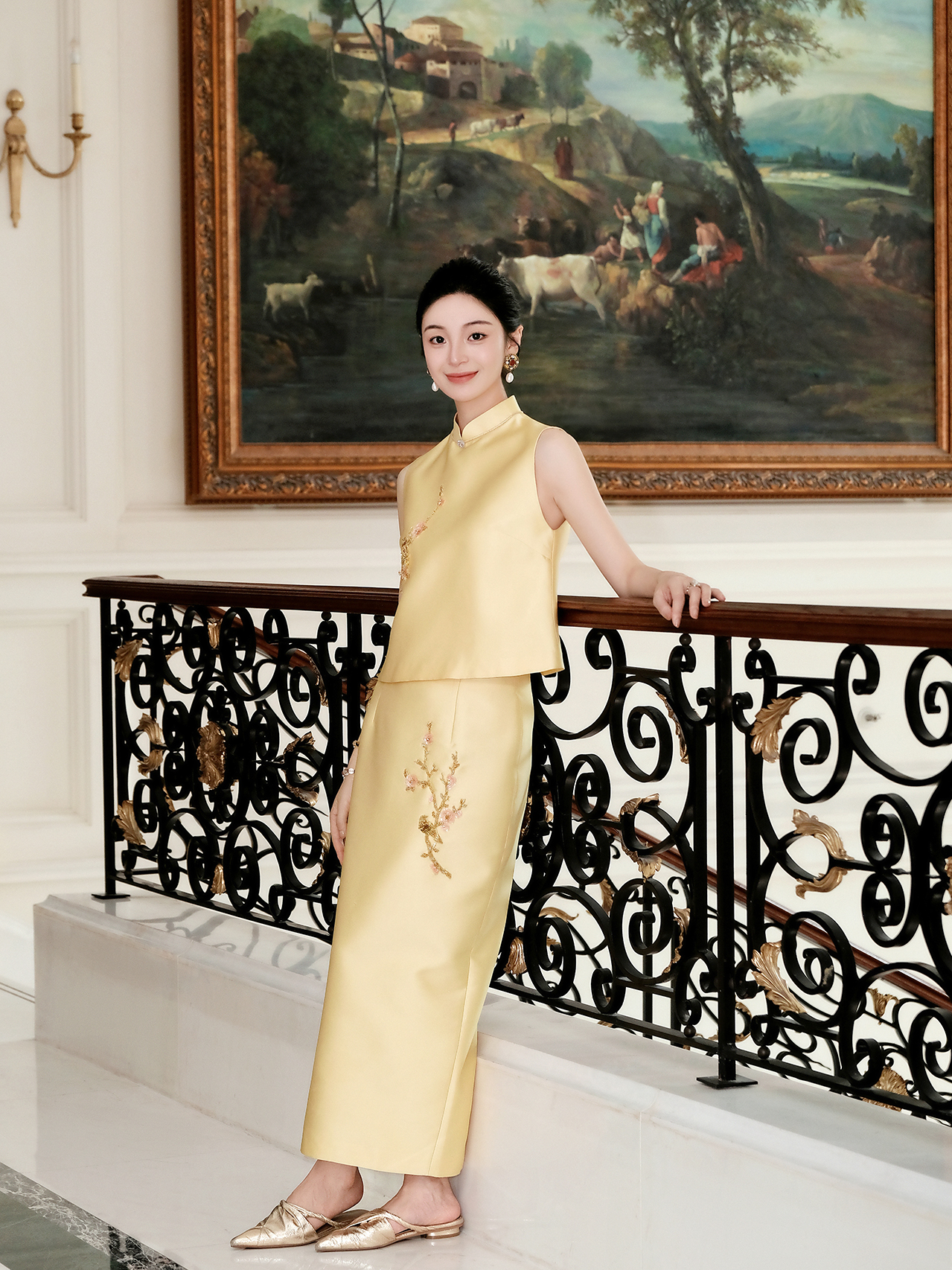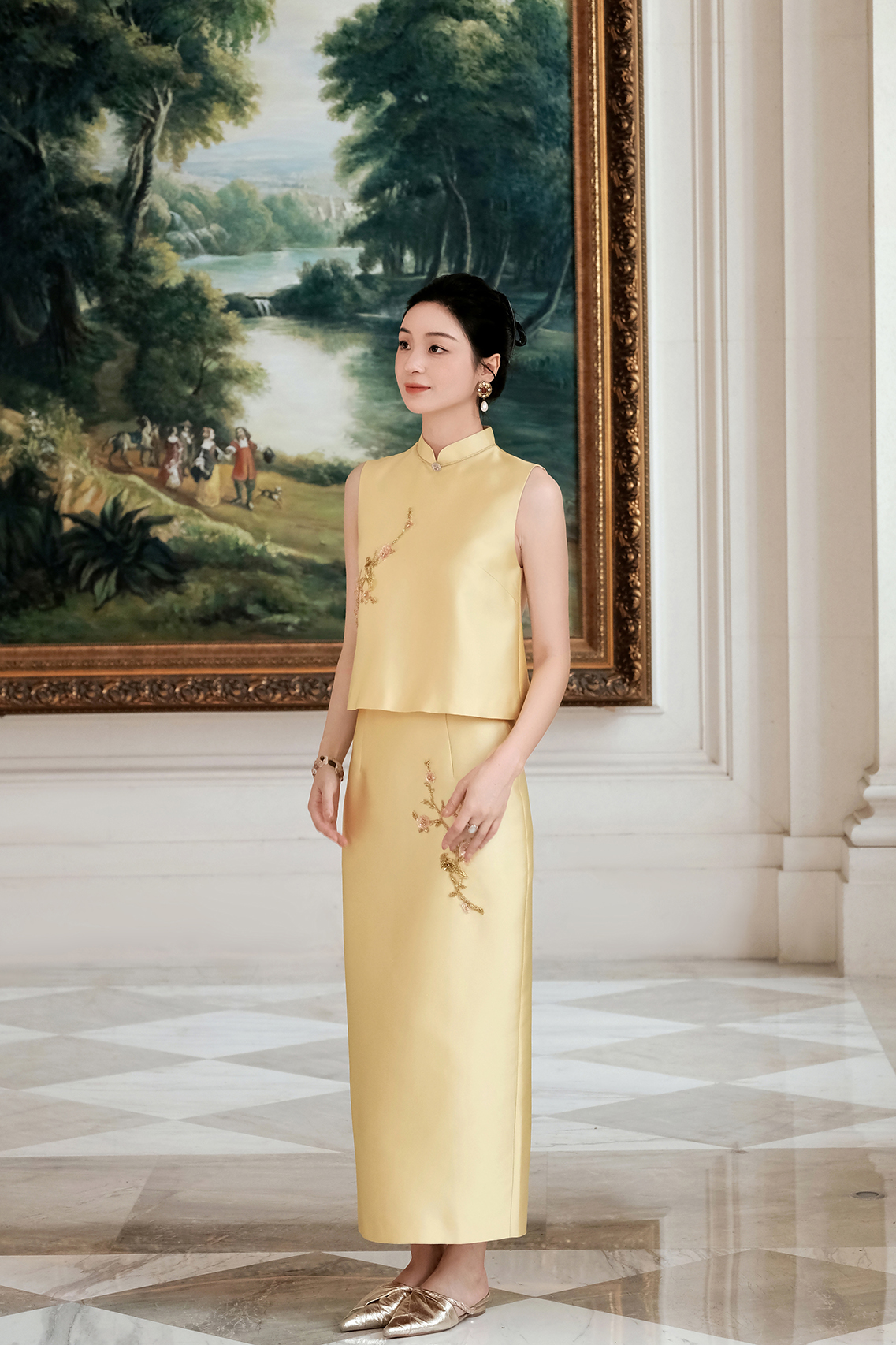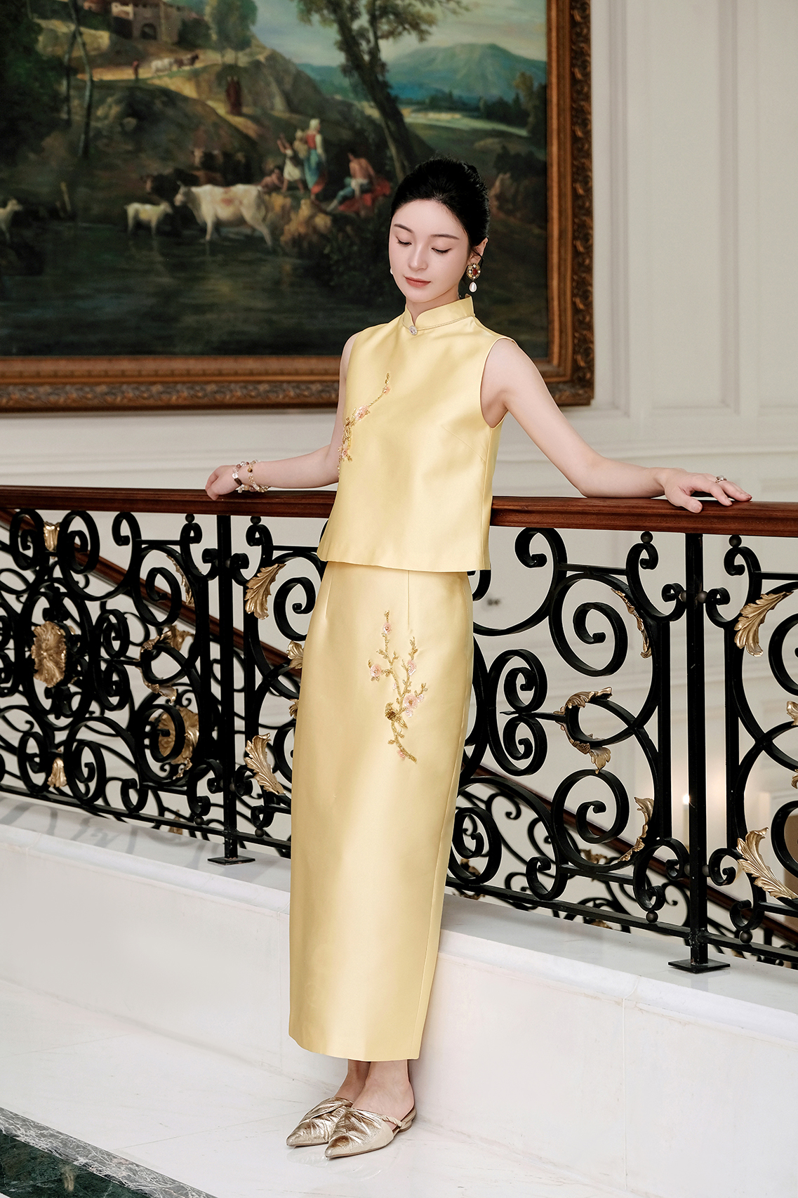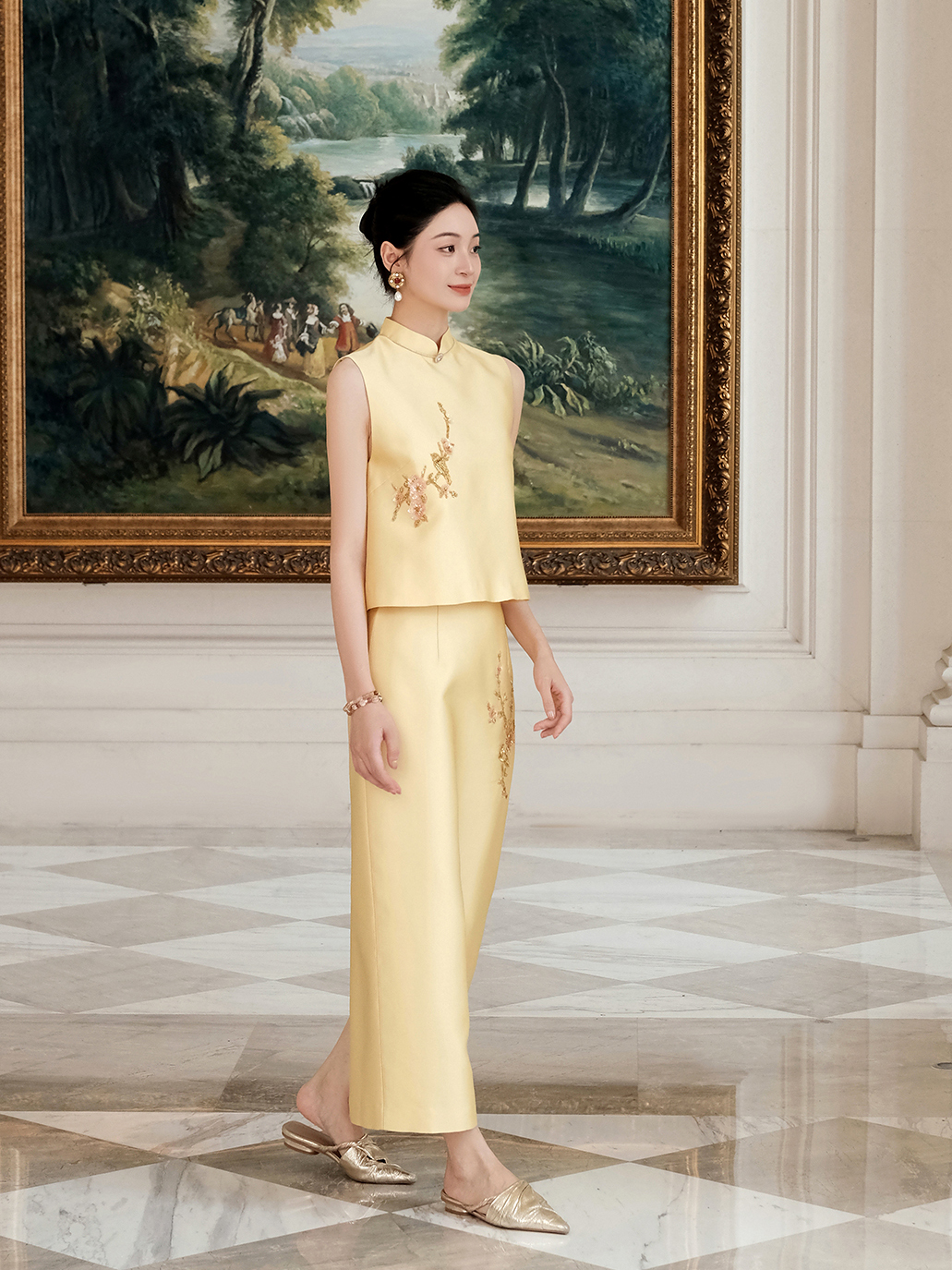 盛唐牡丹 |真丝提花立领马甲 (不夹棉)