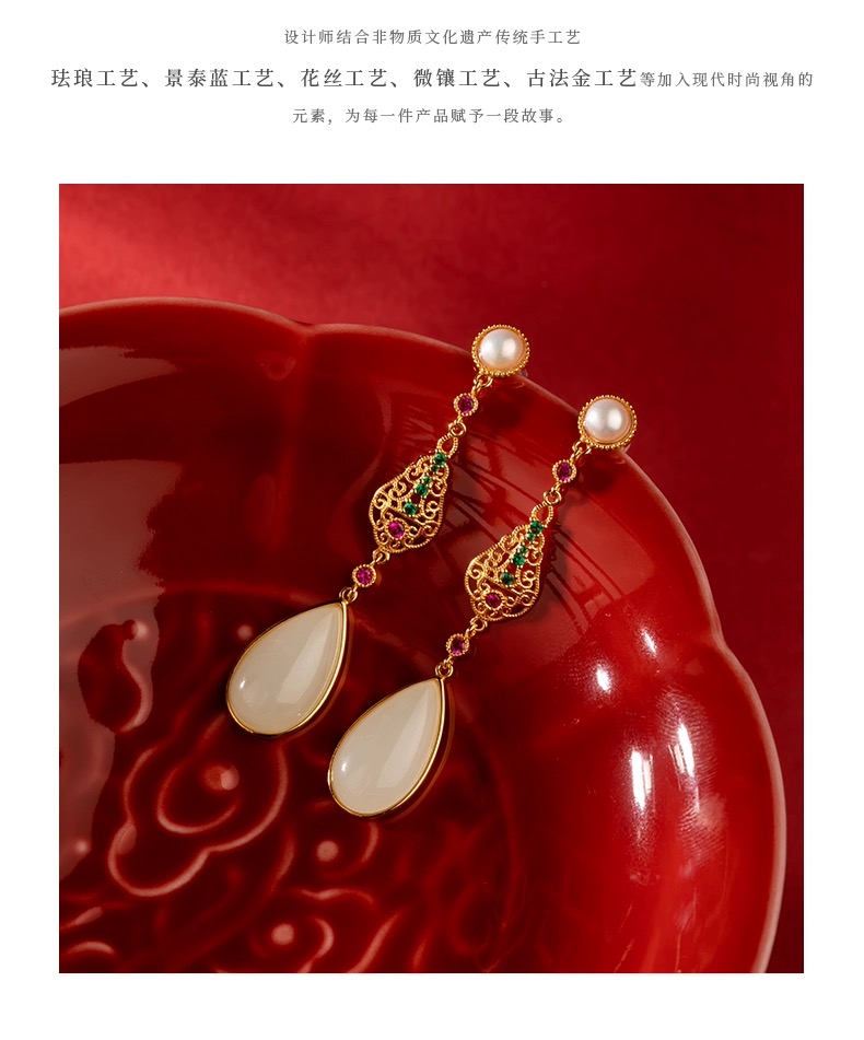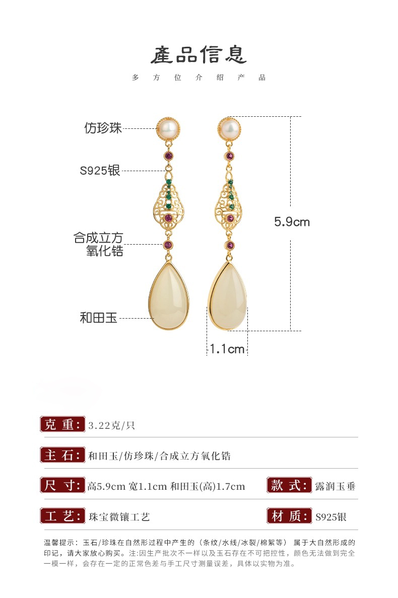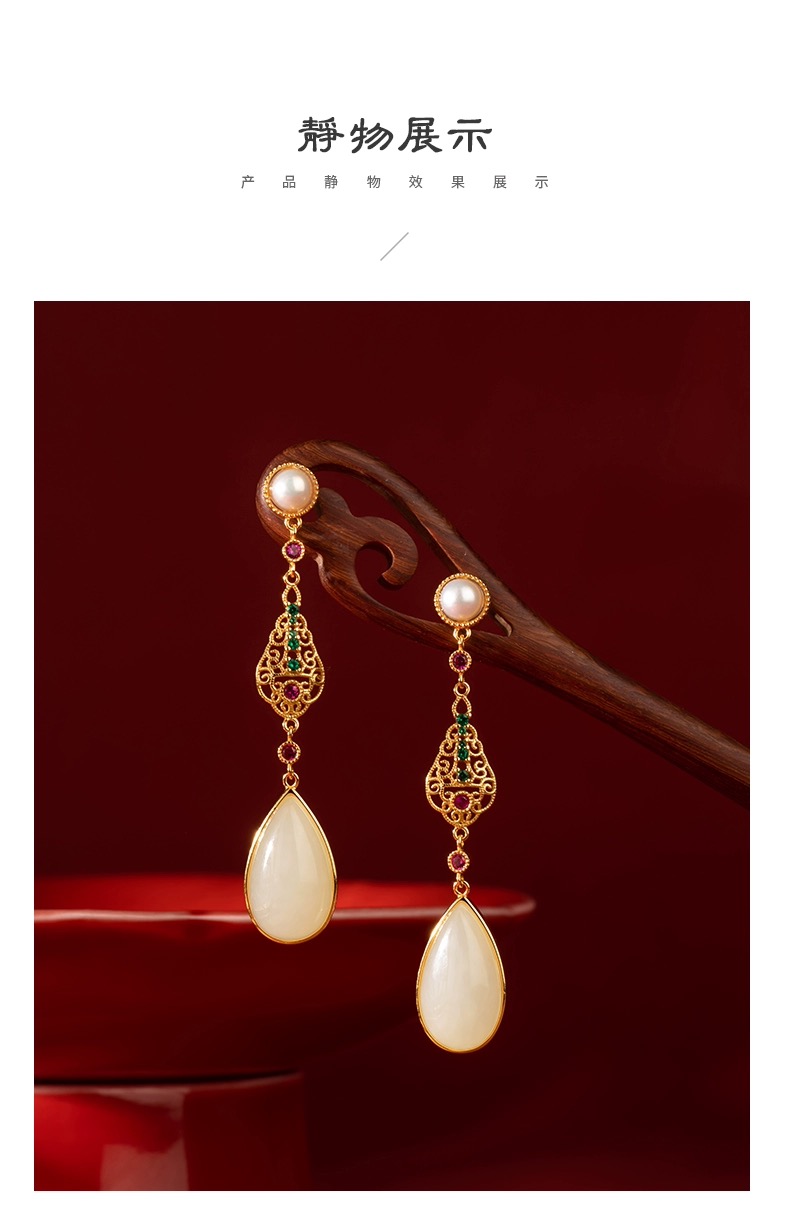 和田玉水滴耳饰