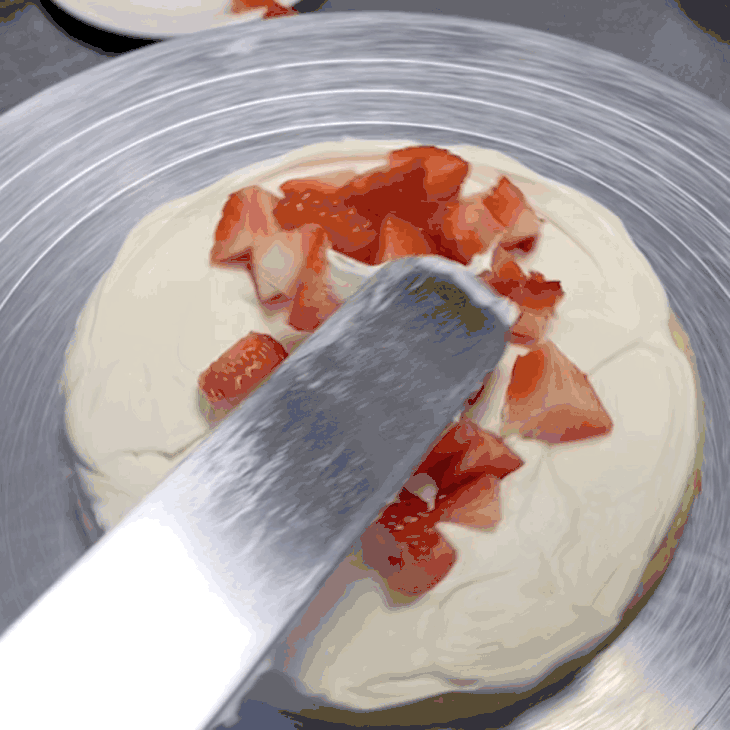 每一个6寸蛋糕要用将近20颗牛奶草莓