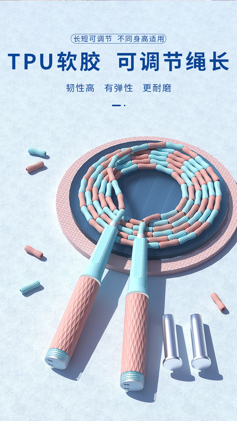 【初学者专用❗️写字款竹节跳绳】新款儿童跳绳软珠不打结防缠绕,小学生儿童跳绳可写班级姓名,体育用品专利跳绳子
