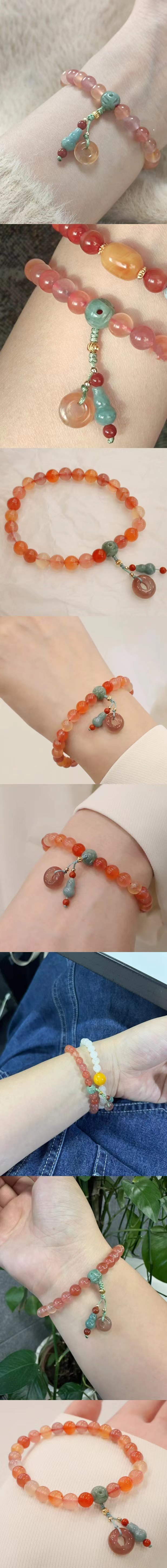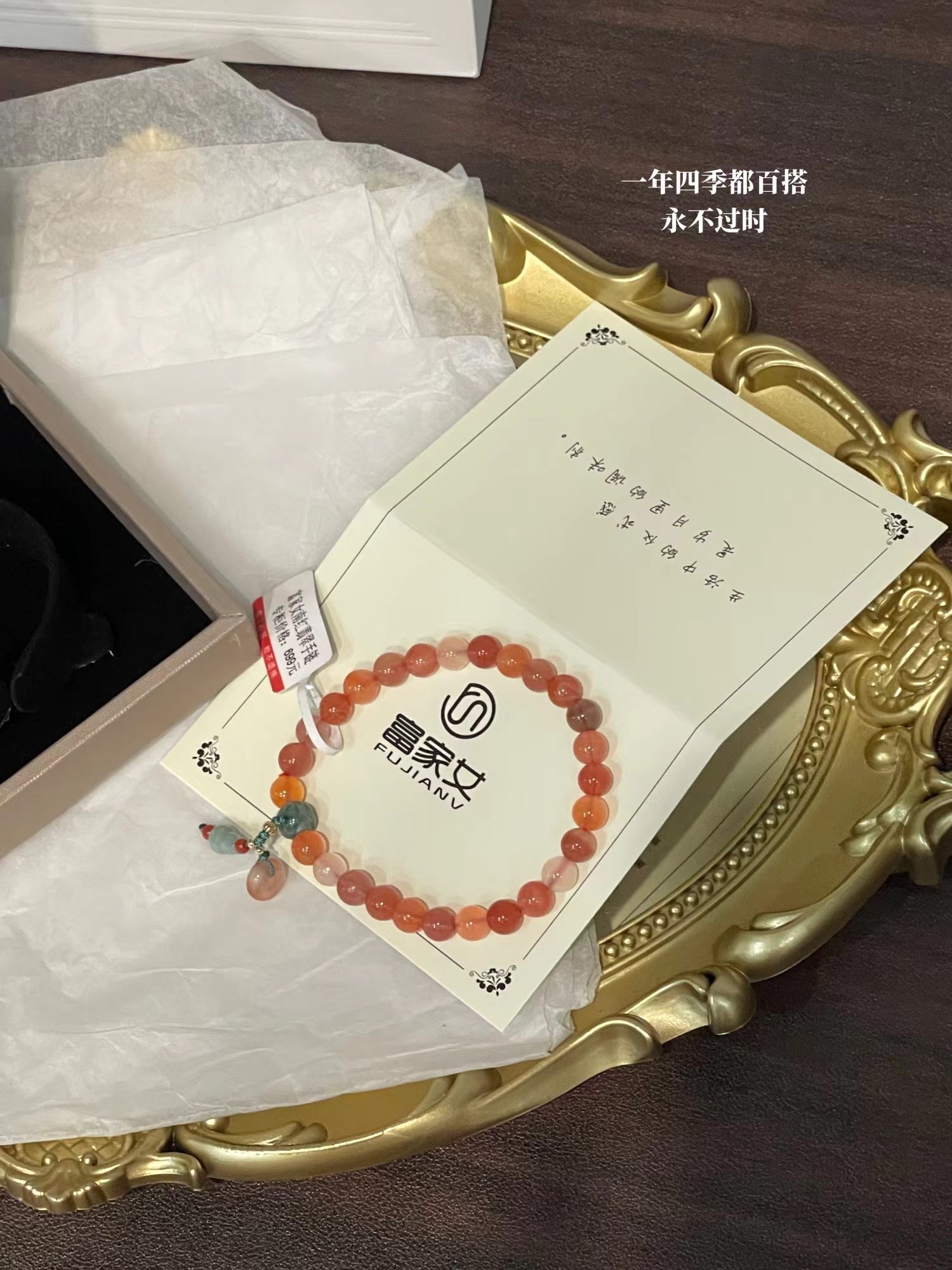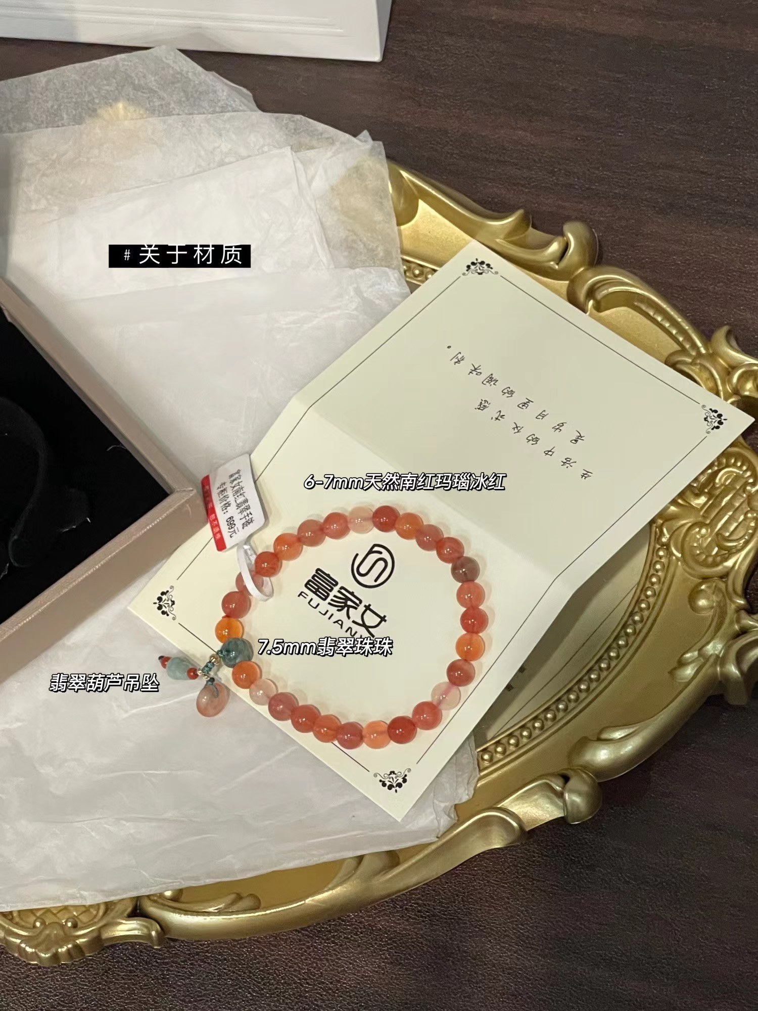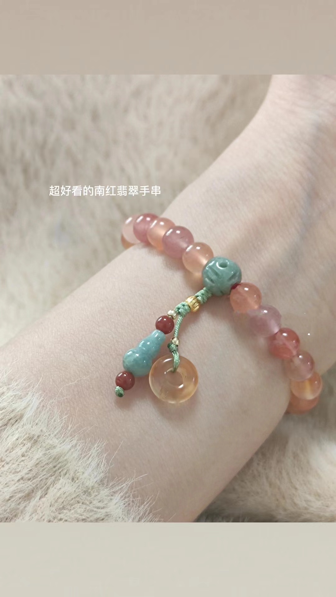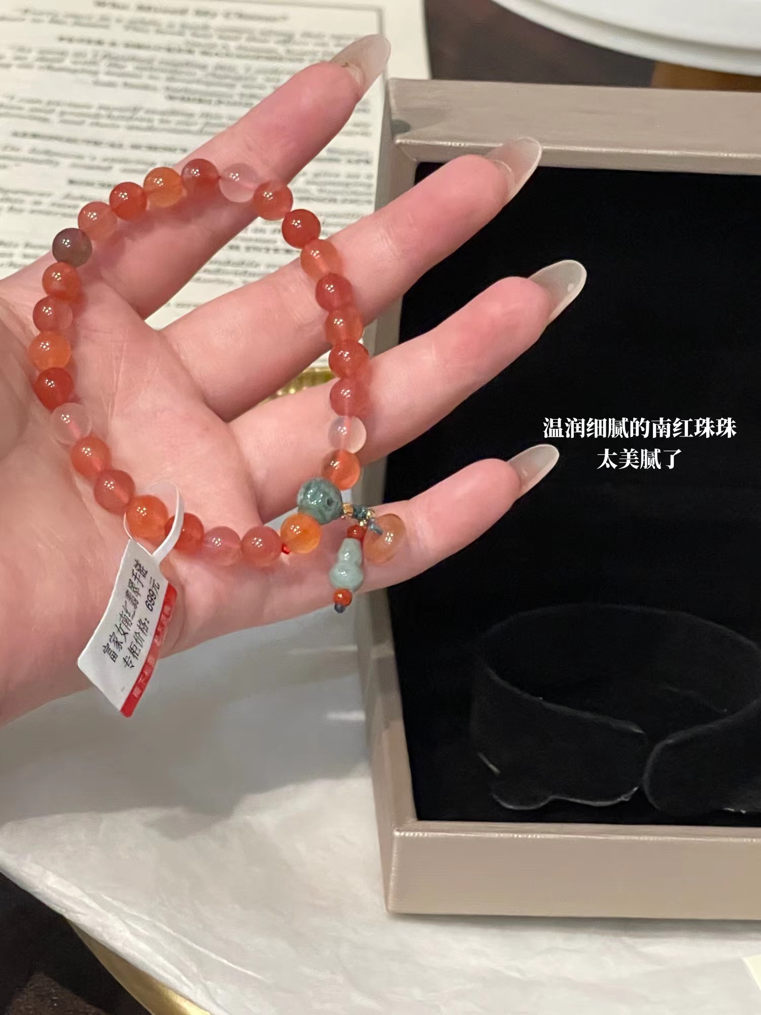 富家女南红翡翠手链配包装 全套包装 纯天然精选玛瑙上手也显白又温柔 珠子水润润有质感葫芦和平安扣吊坠增加了层次感怎么佩戴都不会出错呀~天然南红玛瑙高品质成色极好