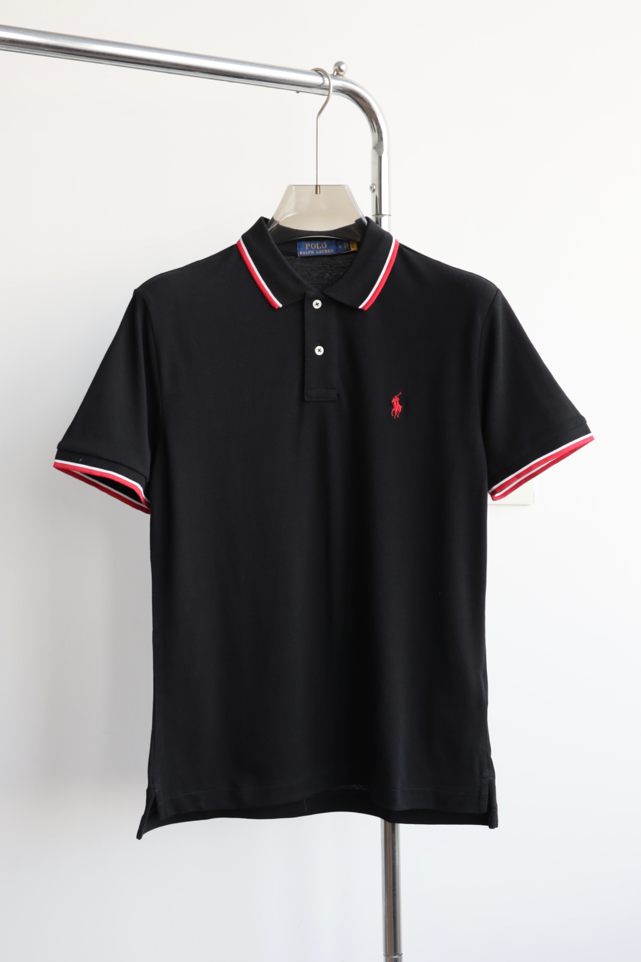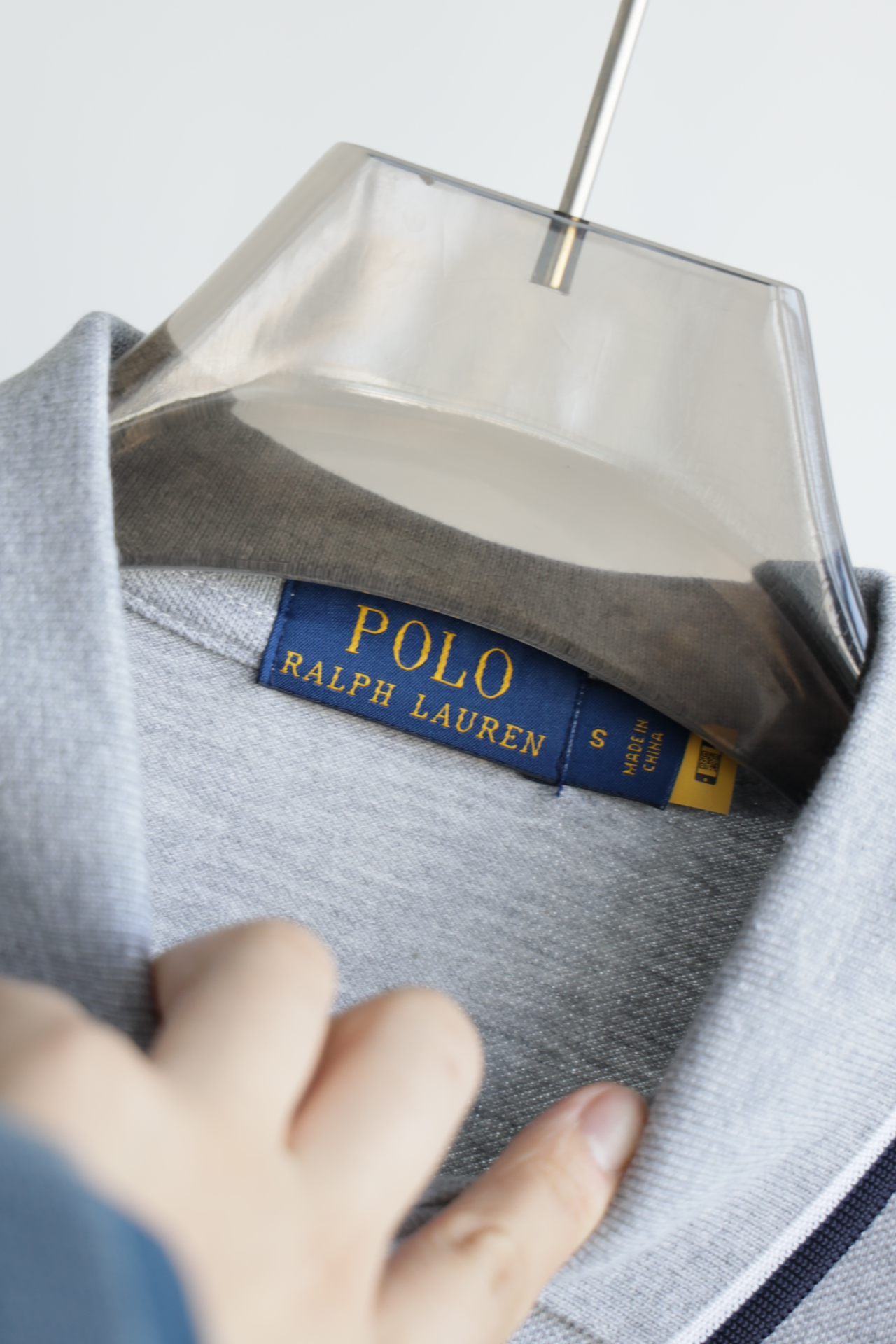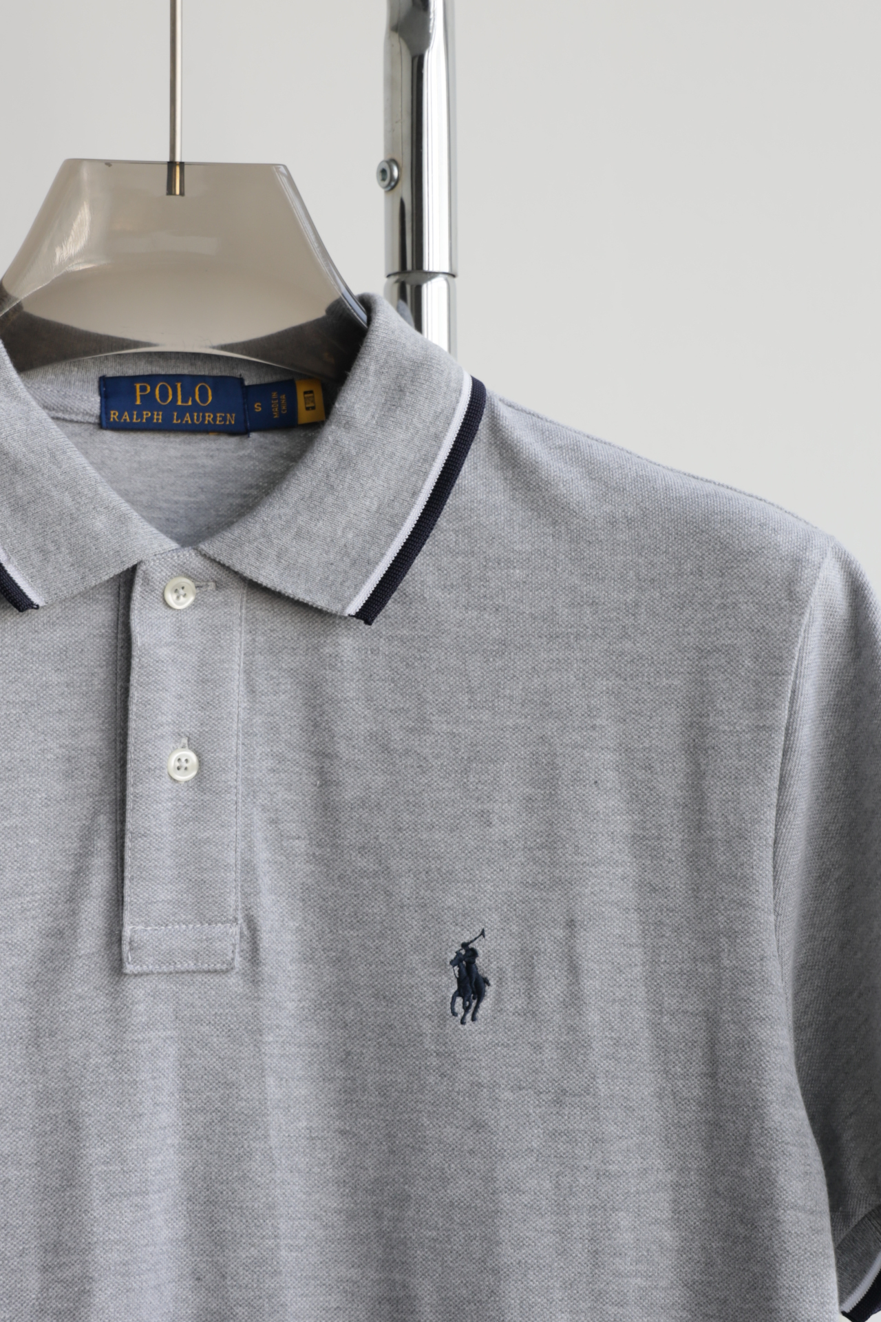 R.L 拼色镶边 纯棉珠地网棉 翻领短袖POLO衫
