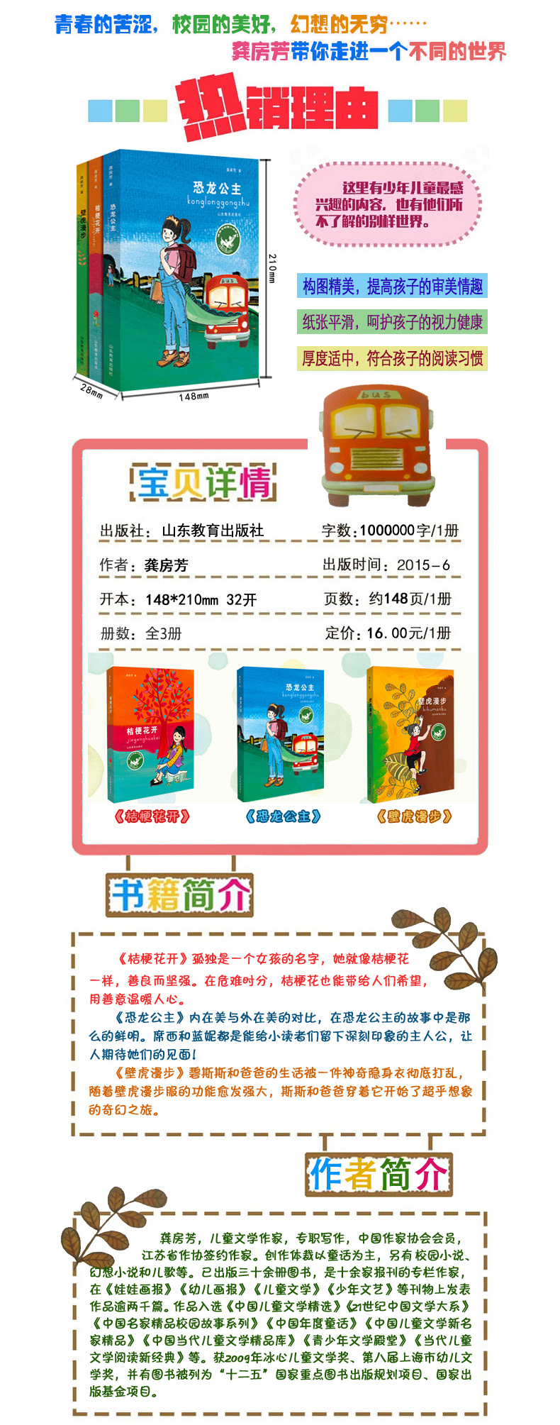 龚房芳新作 学生课外书 少年读物 壁虎漫步 桔梗花开 恐龙公主 龚房芳校园小说系列(3册/套)
