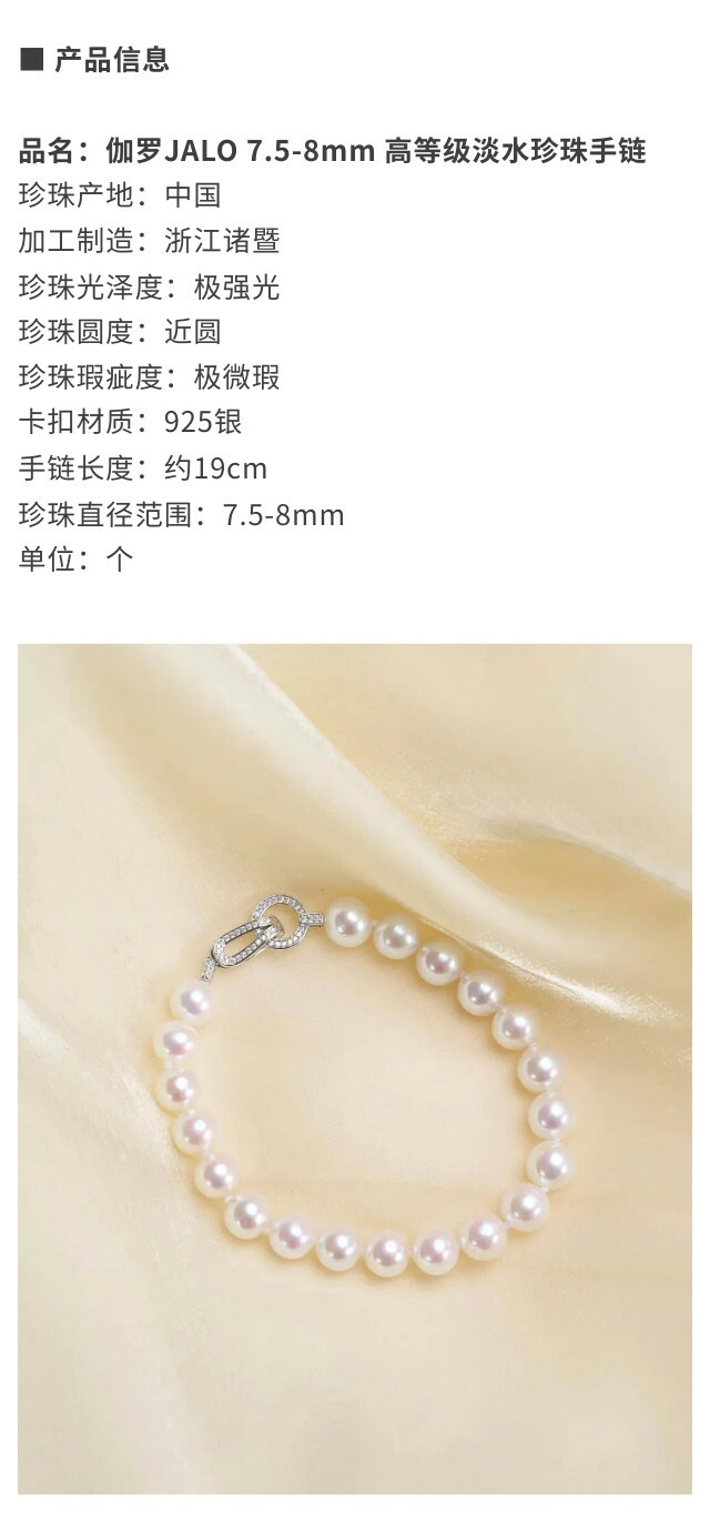 伽罗 JALO 7.5-8mm 高等级淡水珍珠手链