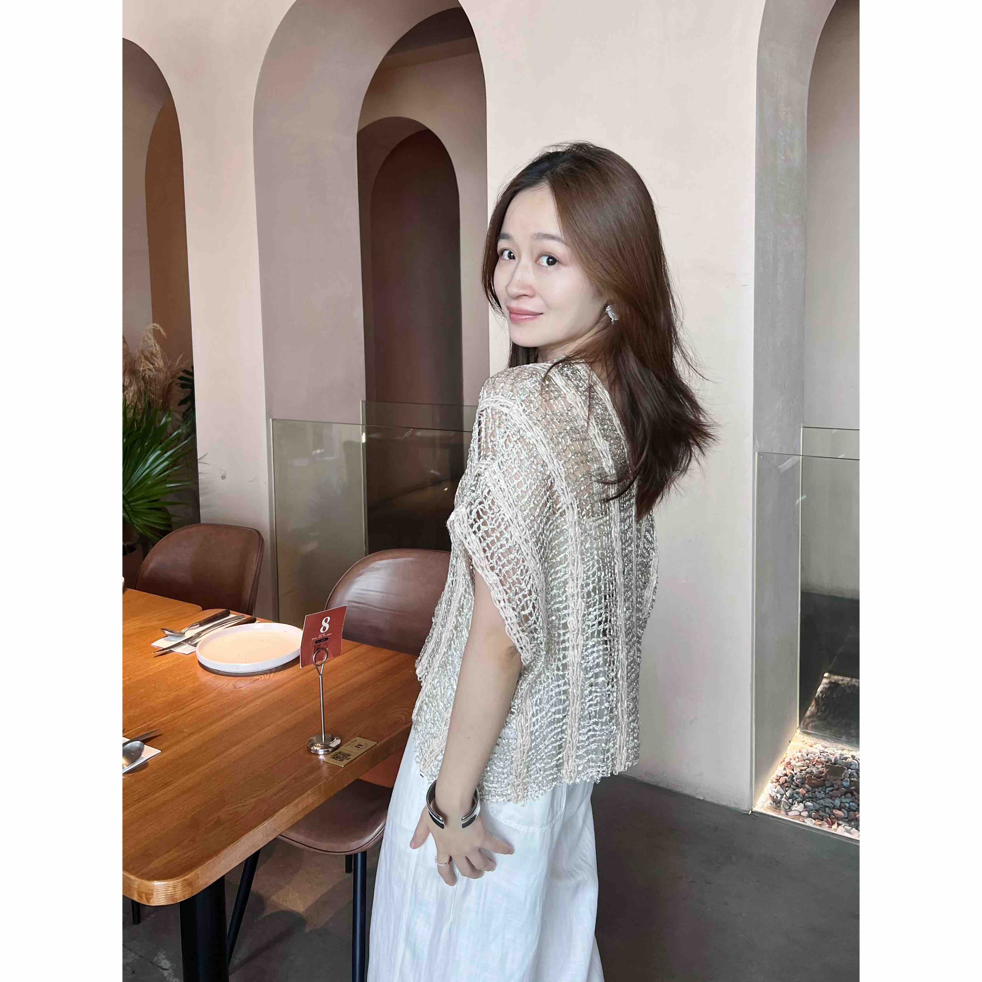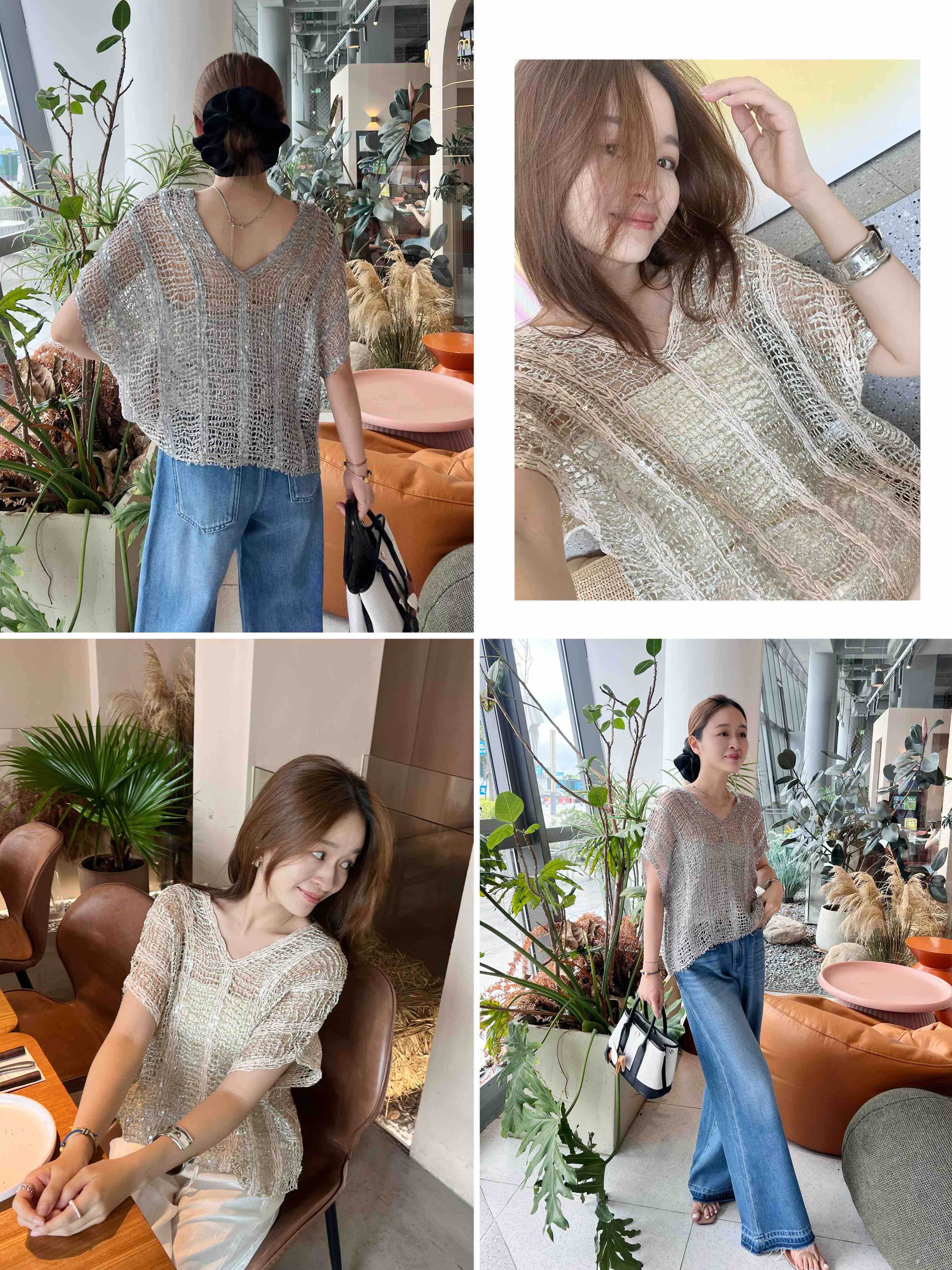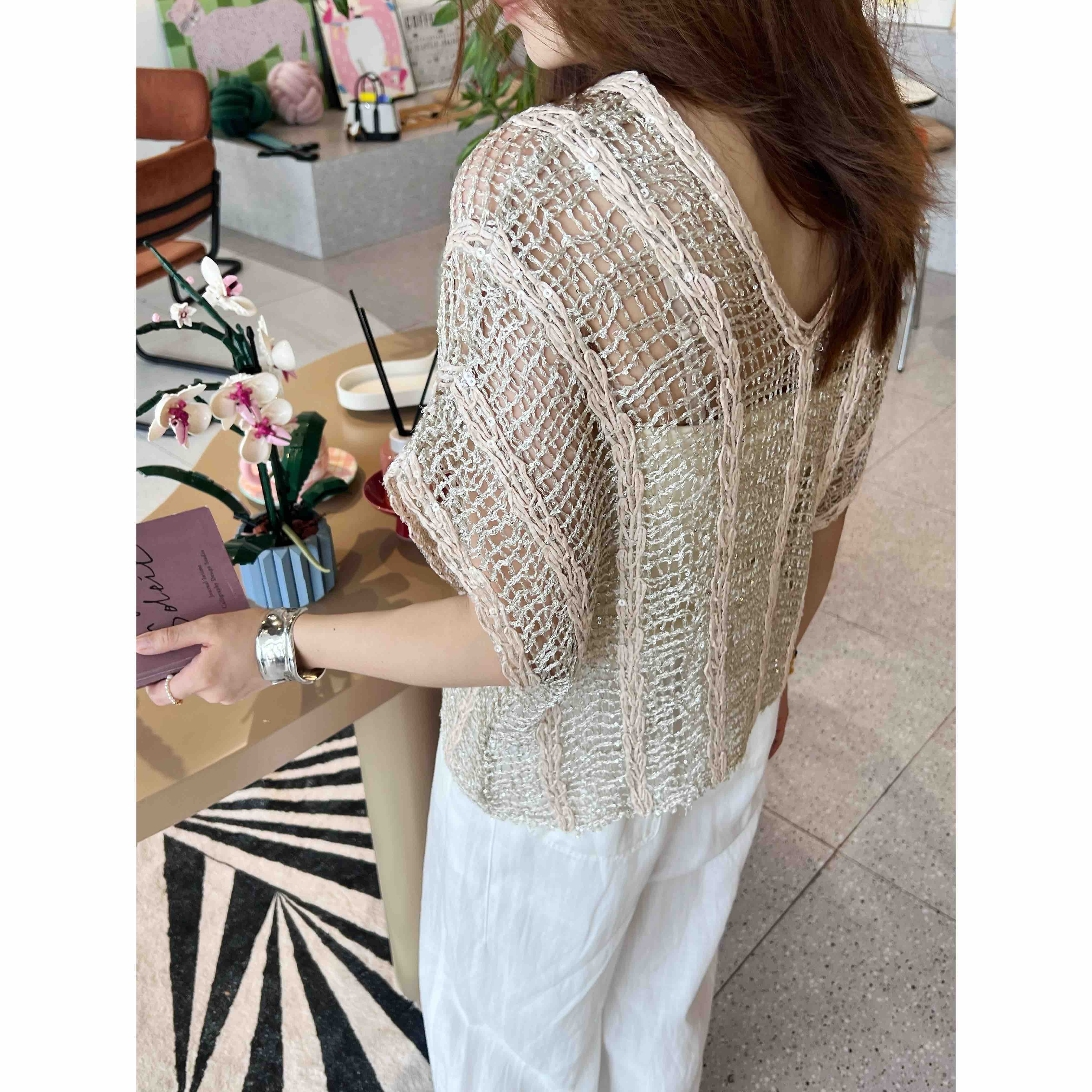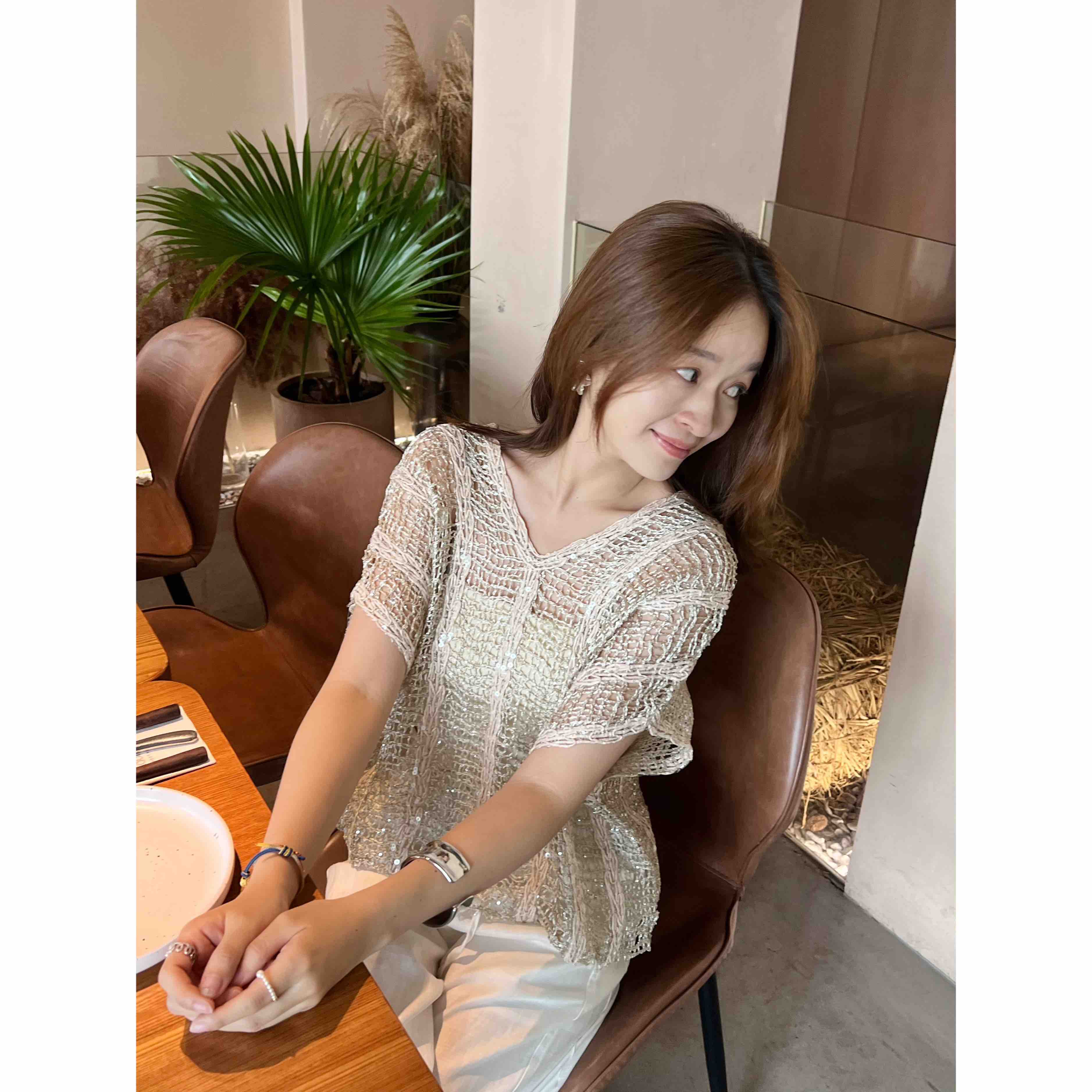 2507504 真丝亚麻+珠片 美衣