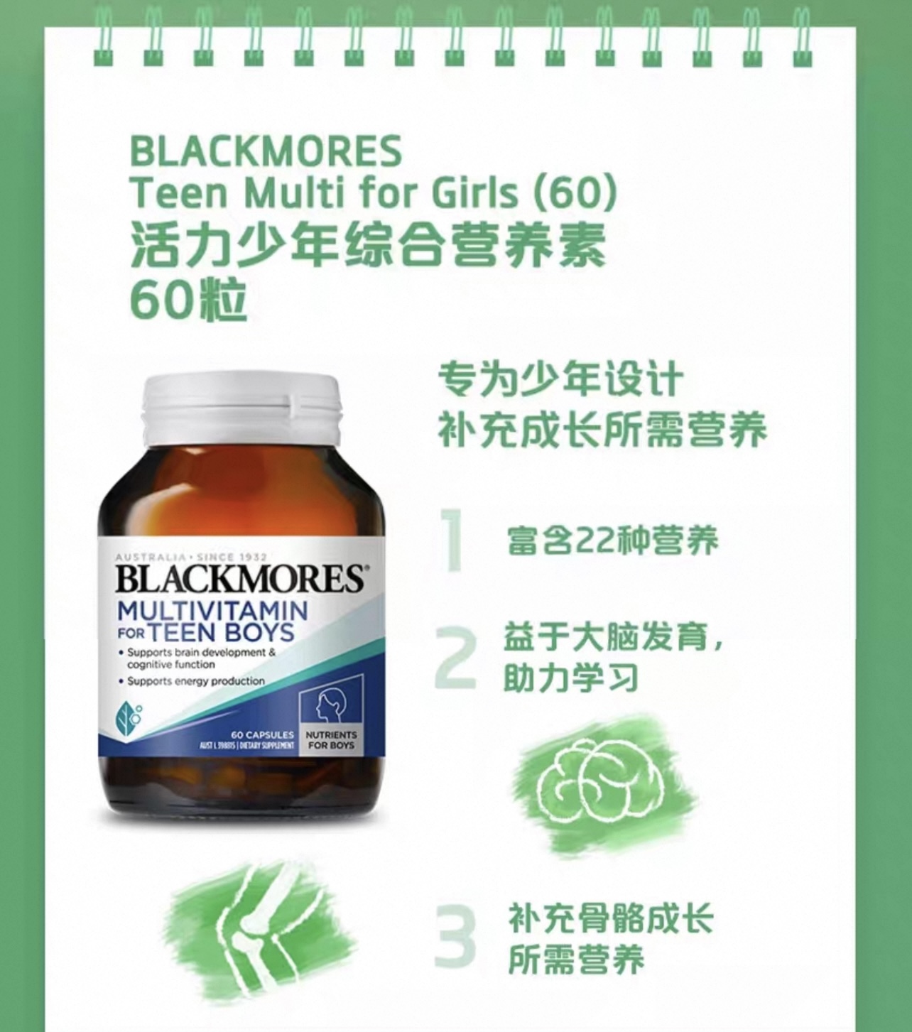 小斯代购 澳佳宝BLACKMORES活力少年/少女综合营养素 60粒
