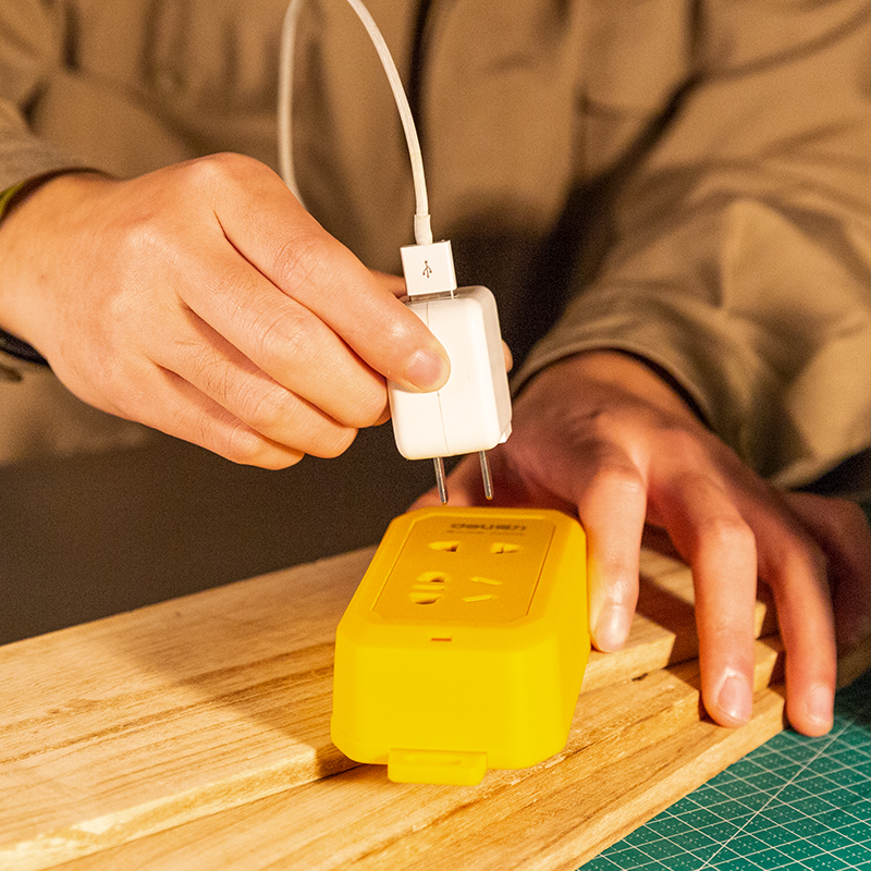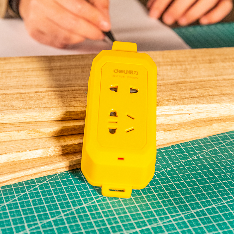 得力T18298无线电源插座1+1组合孔(黄)