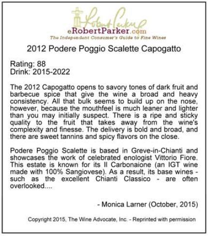 2012 POGGIO SCALETTE CAPOGATTO IGT ALTA VALLE DELLA GREVE