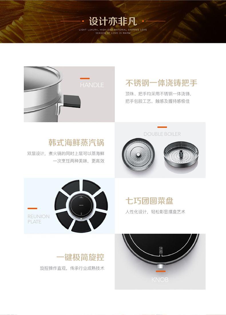 一年的柴米油盐,都抵不过一顿温暖的团圆饭,团圆是每个人心底zui柔软的守望。团圆不仅仅是单纯的相聚,更是对亲情的强化,便从一桌团圆的聚餐中开始了,这是属于自己的家味道,也是团圆的味道。这款韩式电火锅套装,精致gao端,轻奢时尚,品质非凡,德国工艺304yi用级不锈钢,三层复底拉丝工艺~