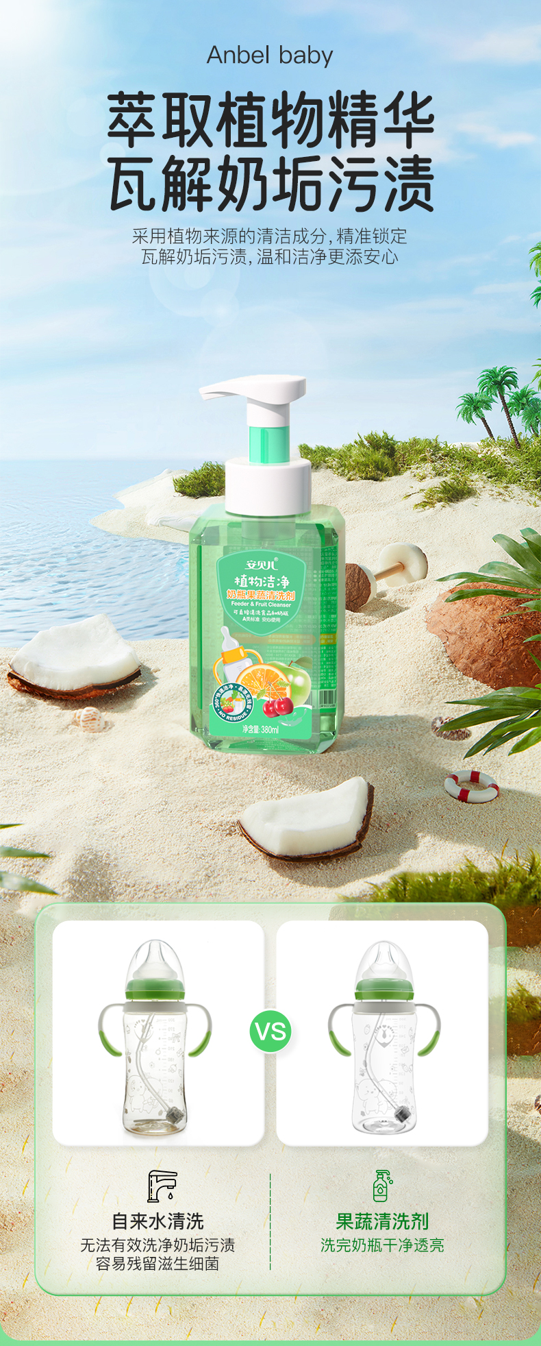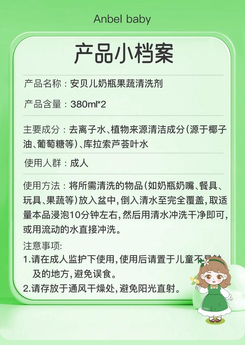 安贝儿 奶瓶果蔬清洗剂*2瓶380ml*2
