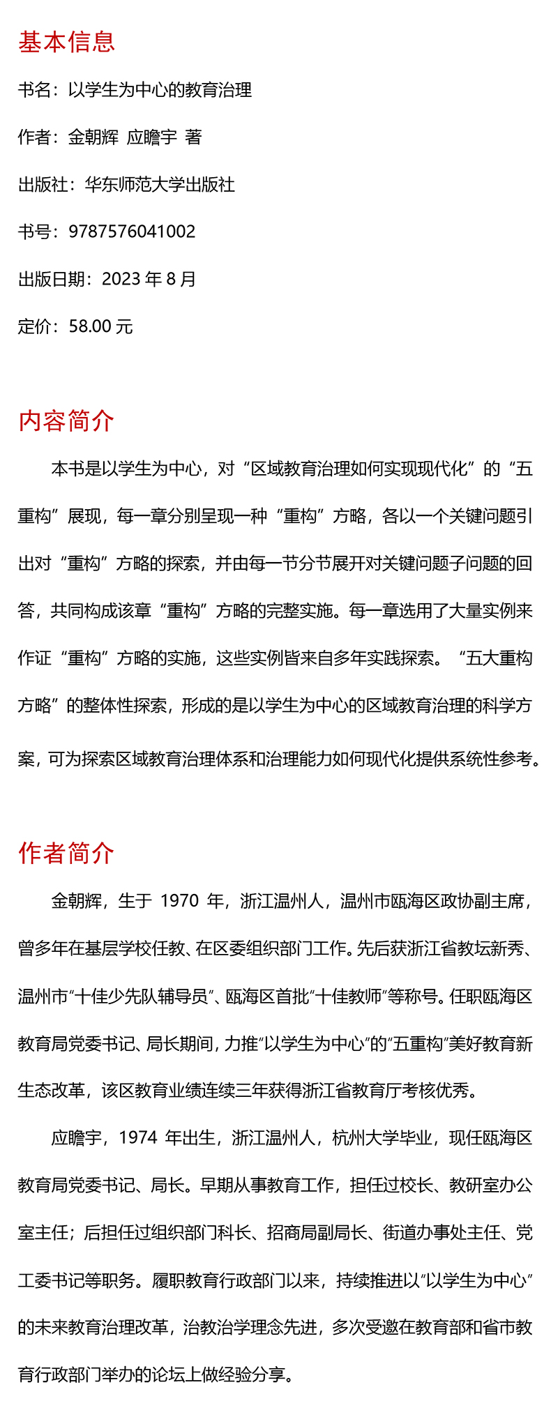 以学生为中心的教育治理 金朝辉 应瞻宇著 区域教育治理