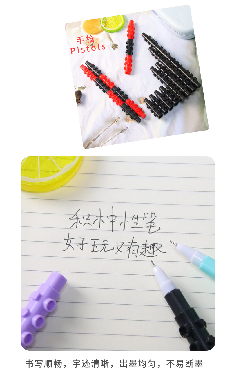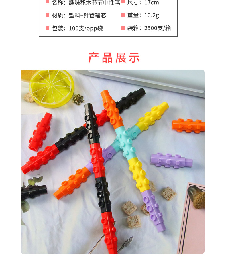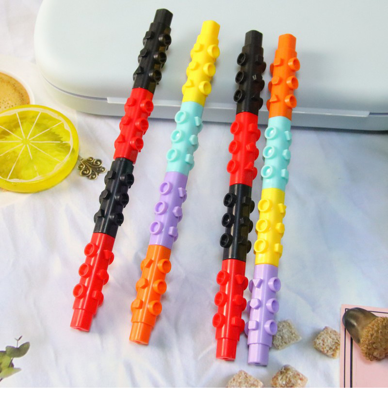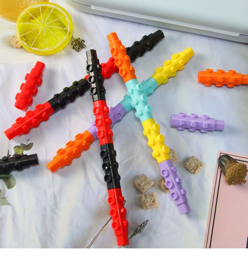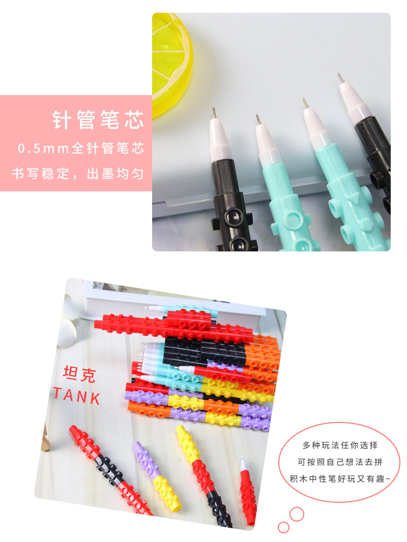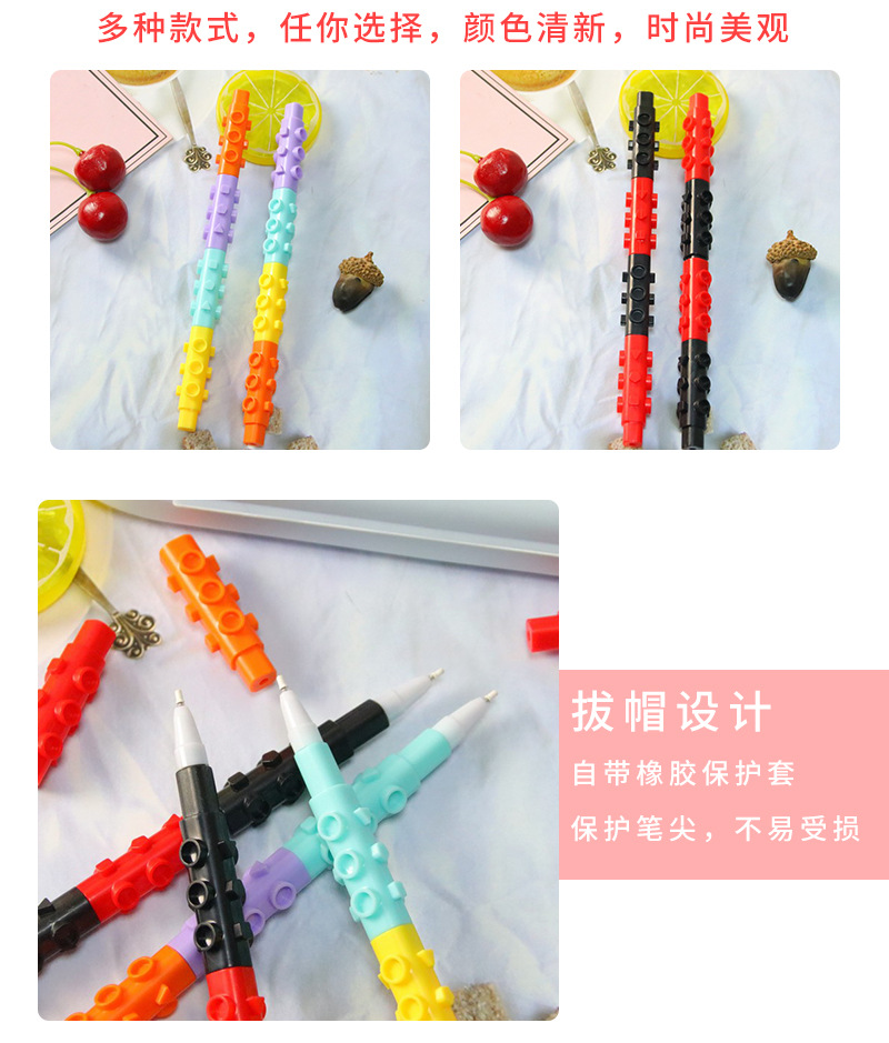 创意拼装节节黑色中性笔学生奖品礼物0.5mm变形积木中性笔卡通可拆卸/支