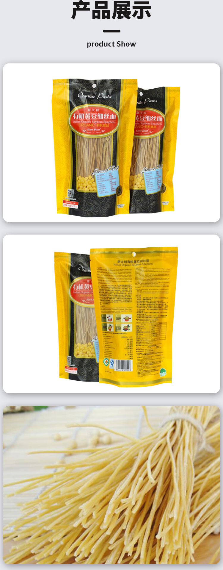 有机认证 意大利有机黄豆细丝面条 无麸质 满百包邮