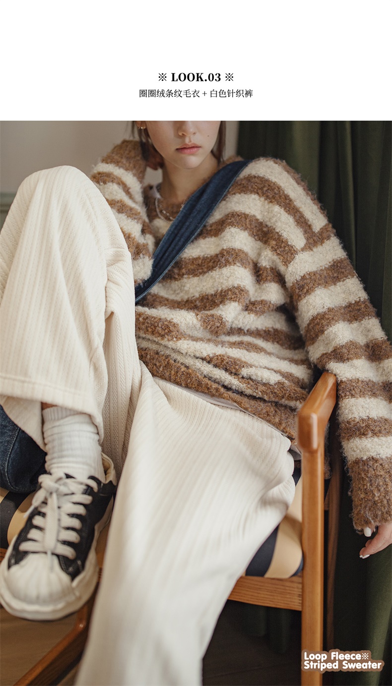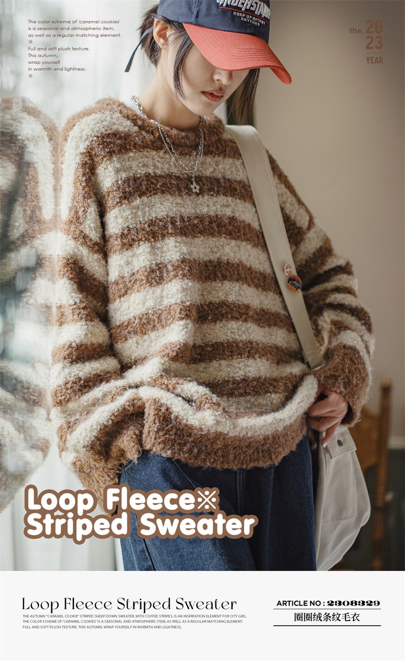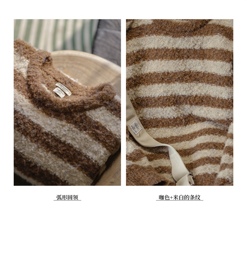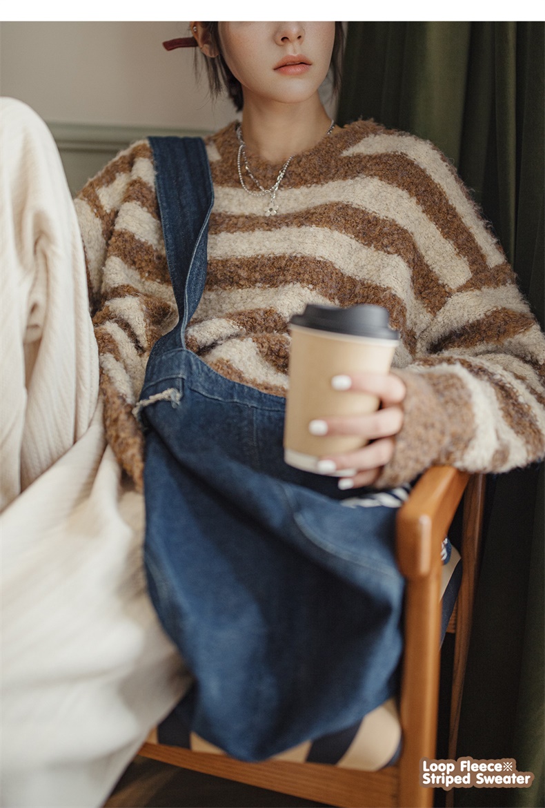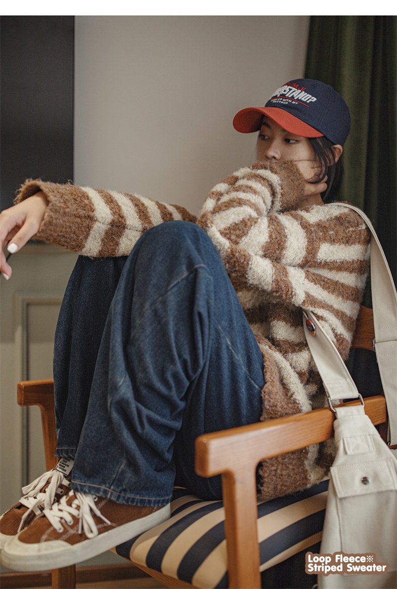马登美式条纹美拉德毛衣秋冬套头圈圈绒针织衫保暖上衣打底衣女