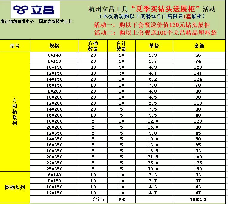 立昌电锤钻头套餐(夏季买钻头送展柜活动)