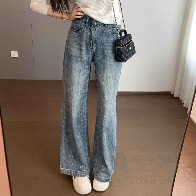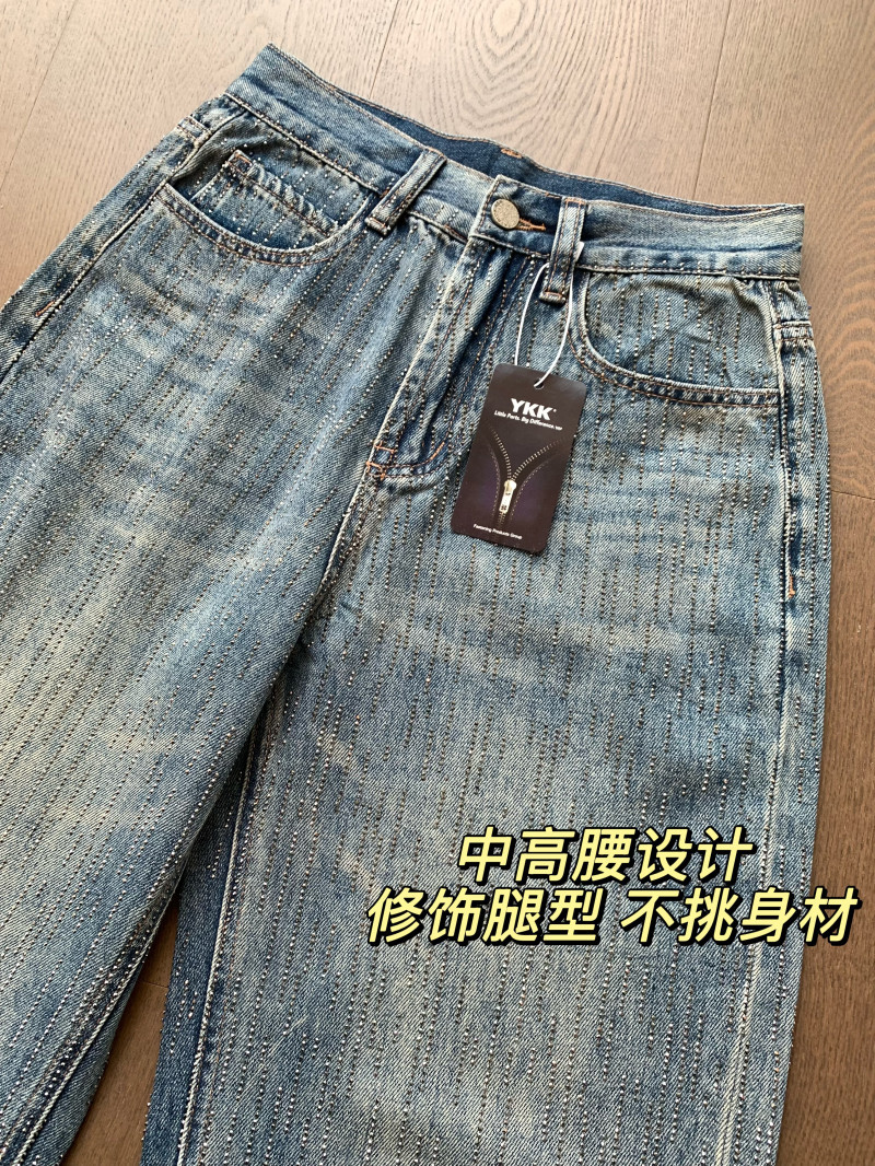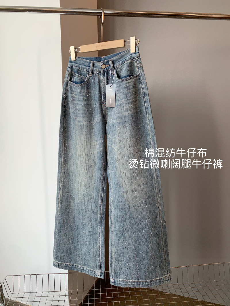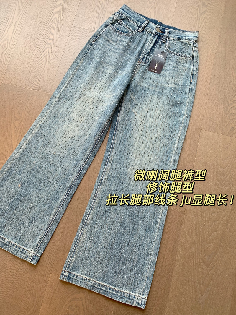 拒绝路人感,闭眼入的蓝色烫钻微喇阔腿裤来啦!