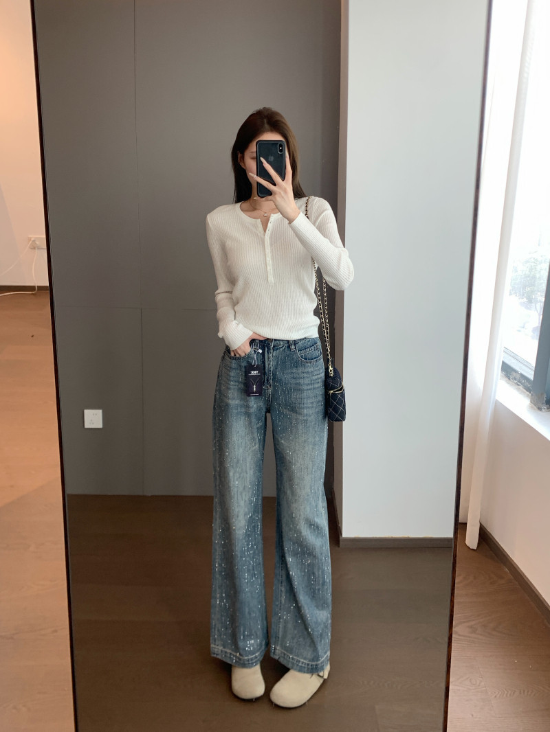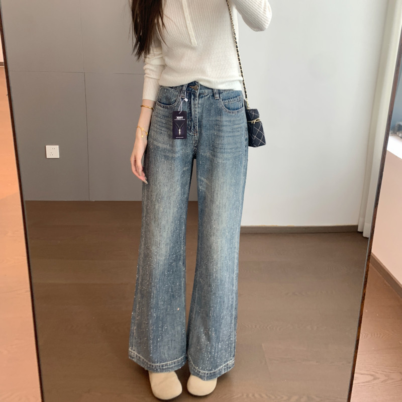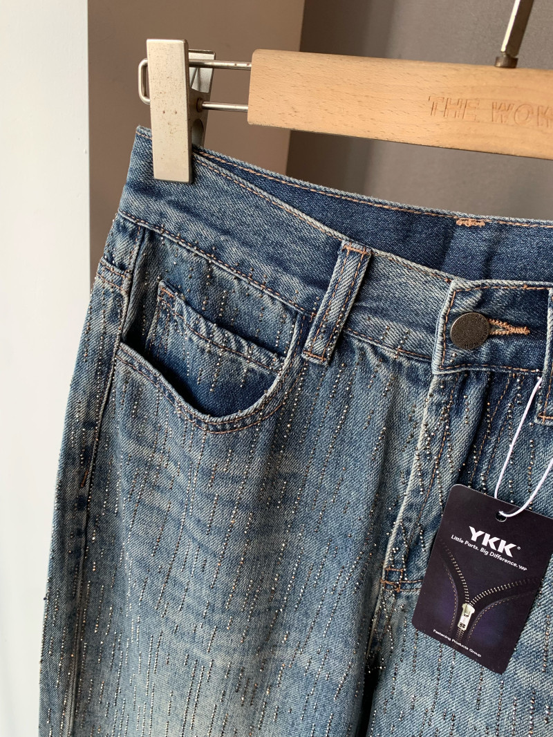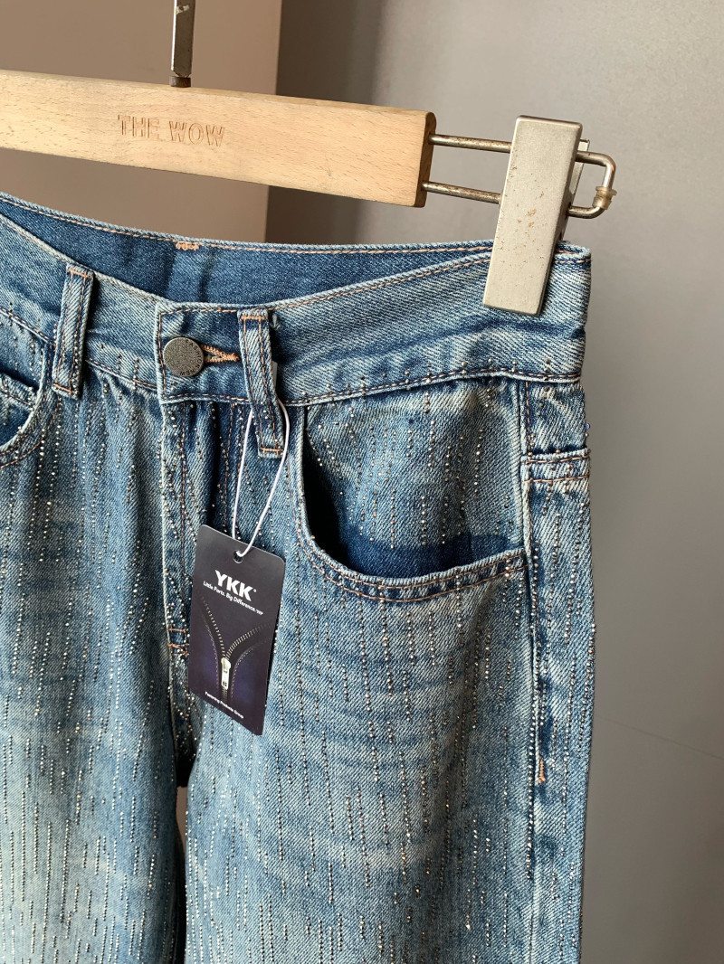 拒绝路人感,闭眼入的蓝色烫钻微喇阔腿裤来啦!