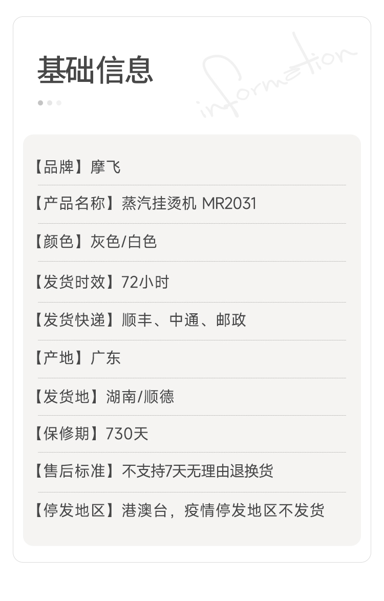【摩飞 蒸汽挂烫机】 官方全新正品 手持挂烫与台面平烫合二为一饱满蒸汽 除皱快速 10秒速热