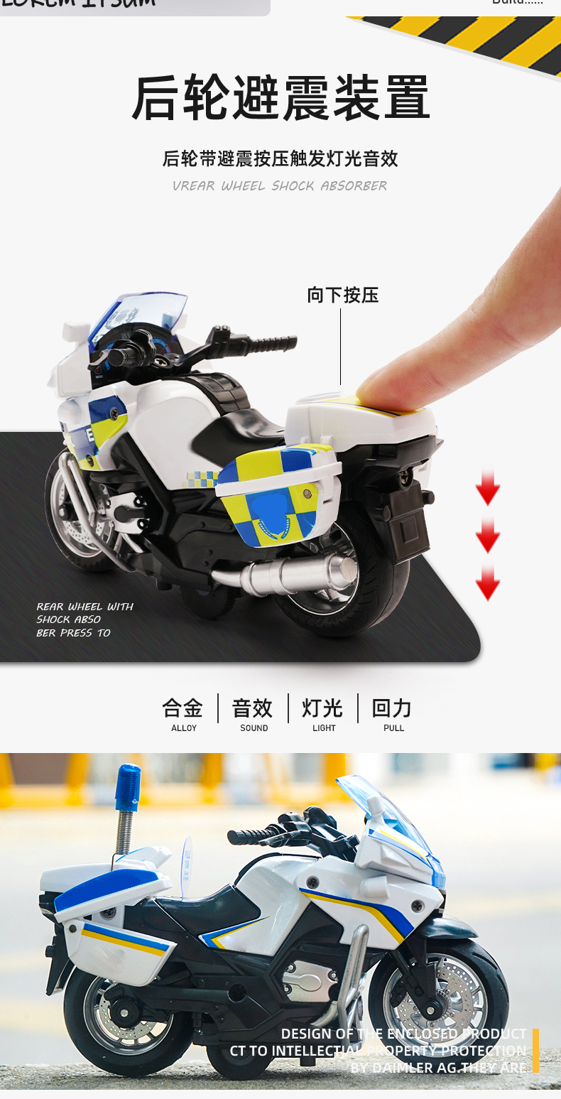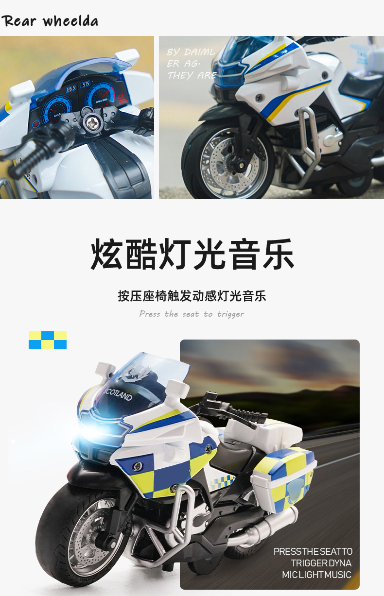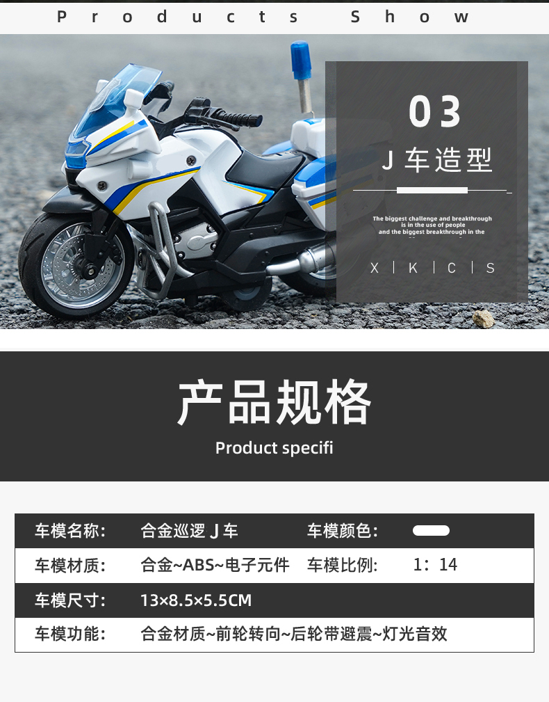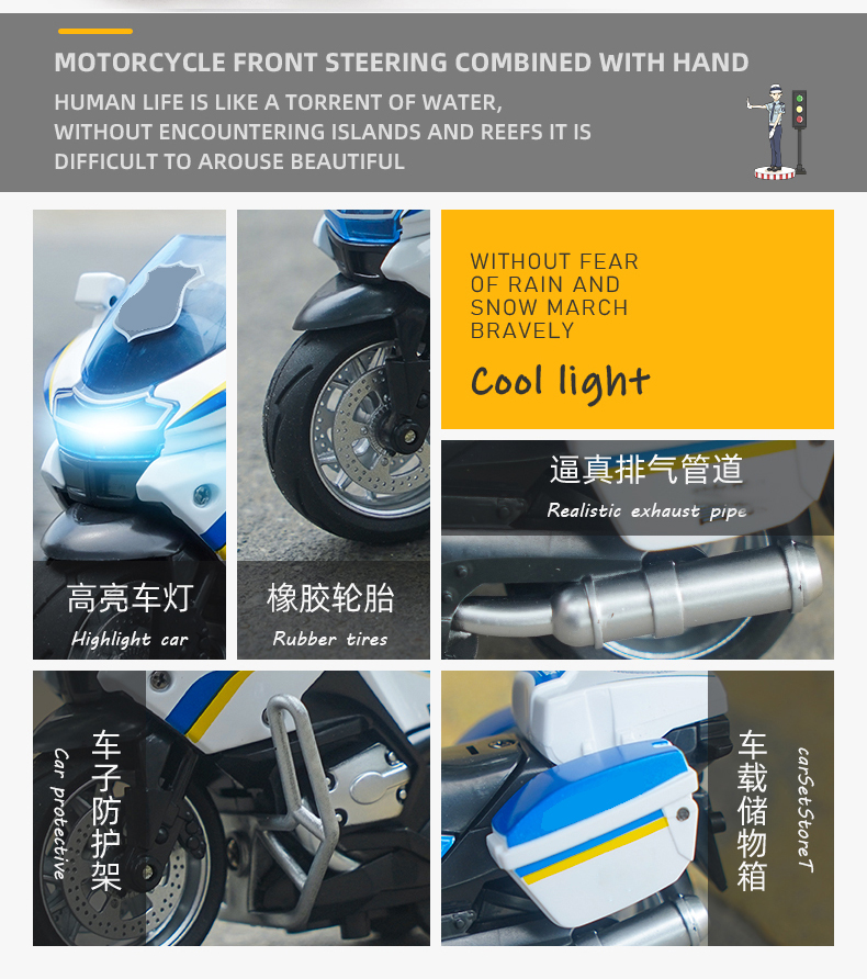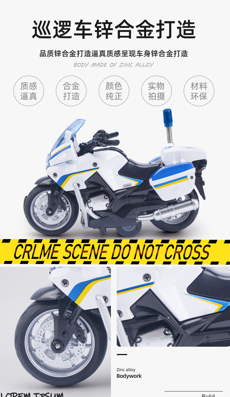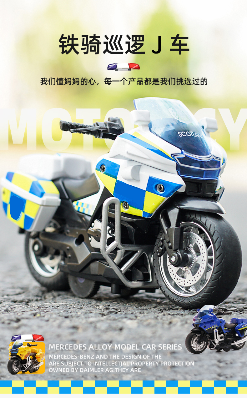 【1:14铁骑摩托车】合金巡逻摩特车模型 儿童玩具车礼品摆件