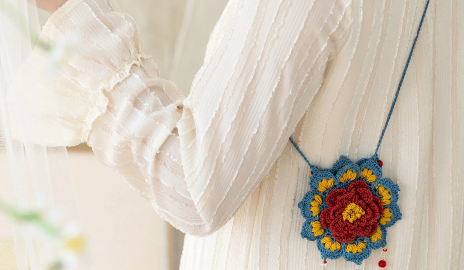 苏苏姐家瑶铃芍药流苏佩手工DIY手编钩针蕾丝线毛线团挂件材料包