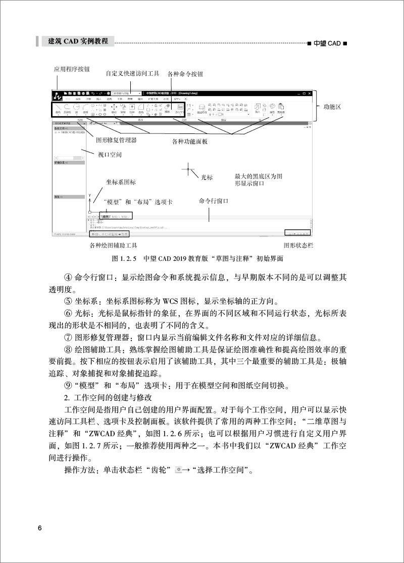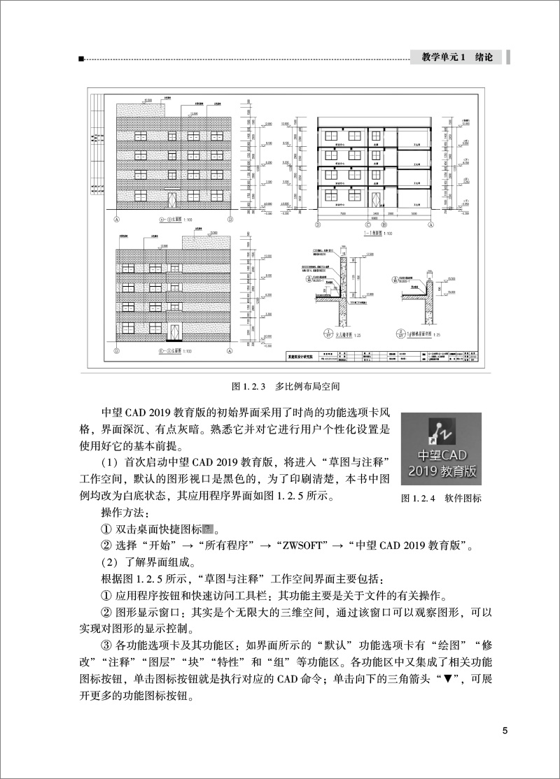 本书编写时,以中望CAD 2019教育版为例进行编写。编写过程中,编写人员以实用、适用、够用为标准,紧贴工程实际,参考了国家最新标准,选用实际工程案例为载体,将理论知识与实践相结合,不断探索如何更好地培养学生的建筑CAD绘图技能。