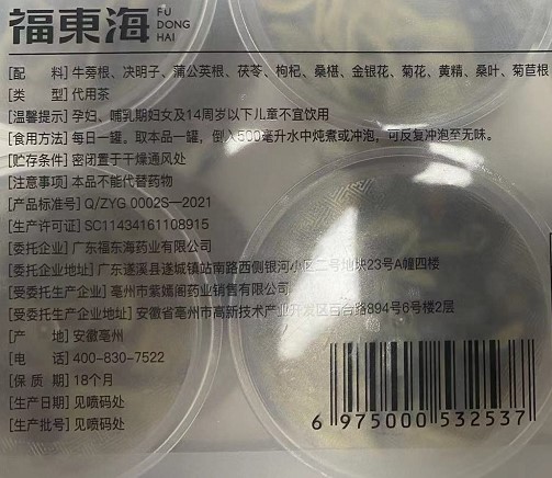 【拍1发5】【福东海】菊花决明子茶(16克*15罐)