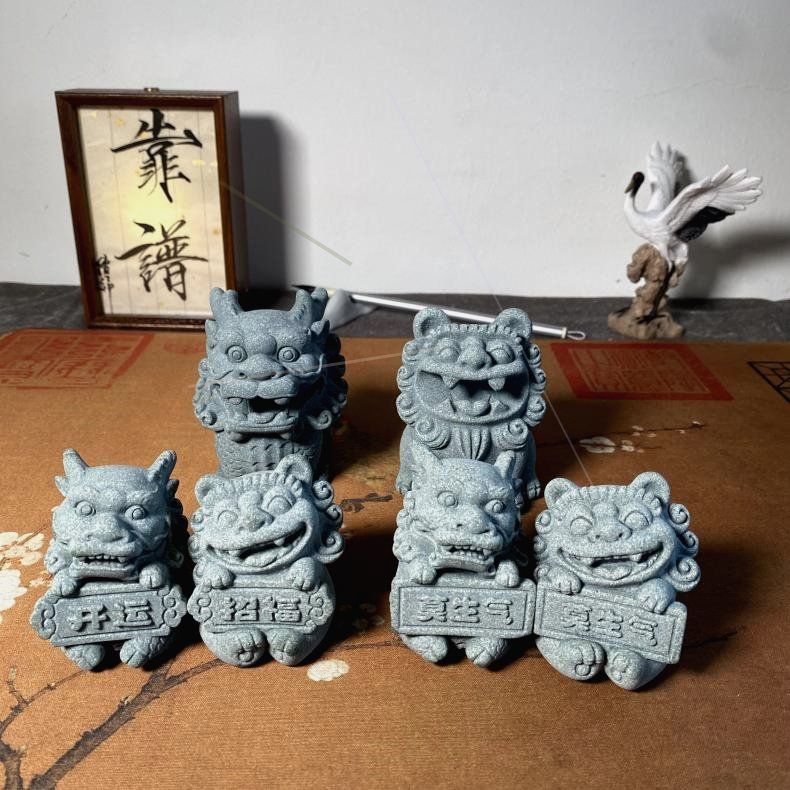 手工石狮麒麟文房笔搁笔架镇纸创意文房摆件