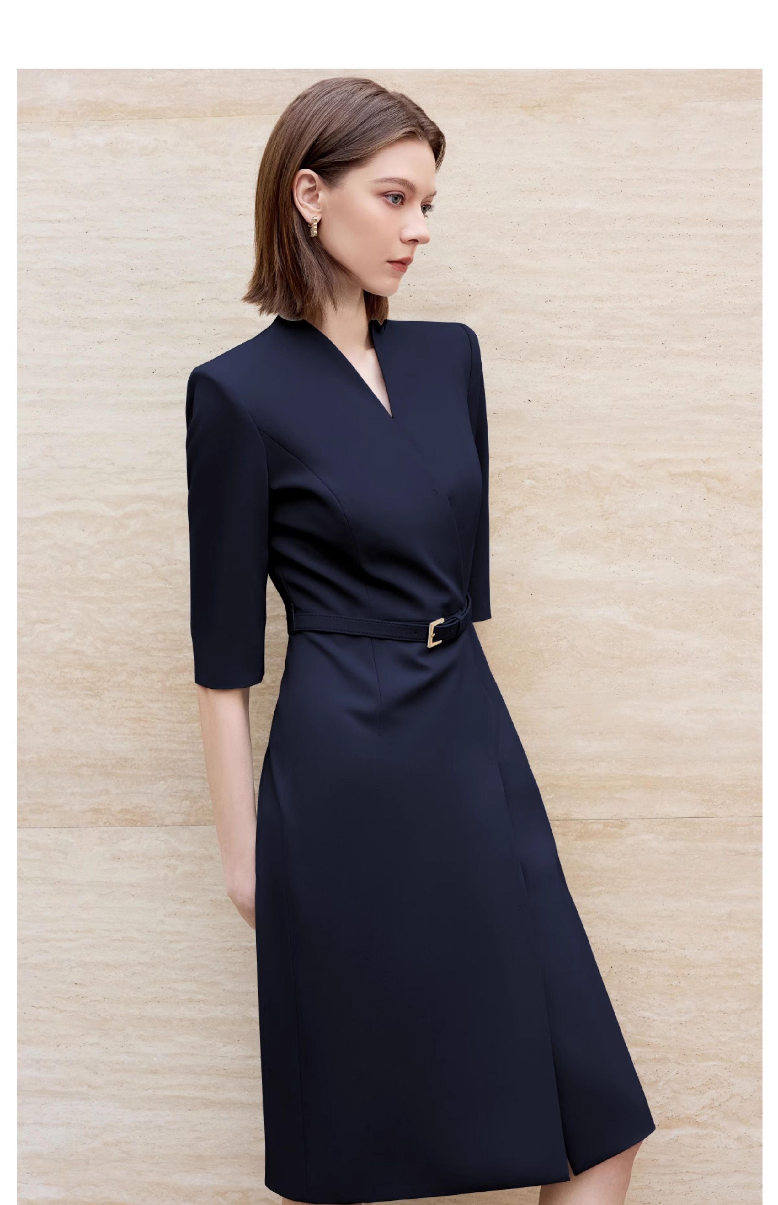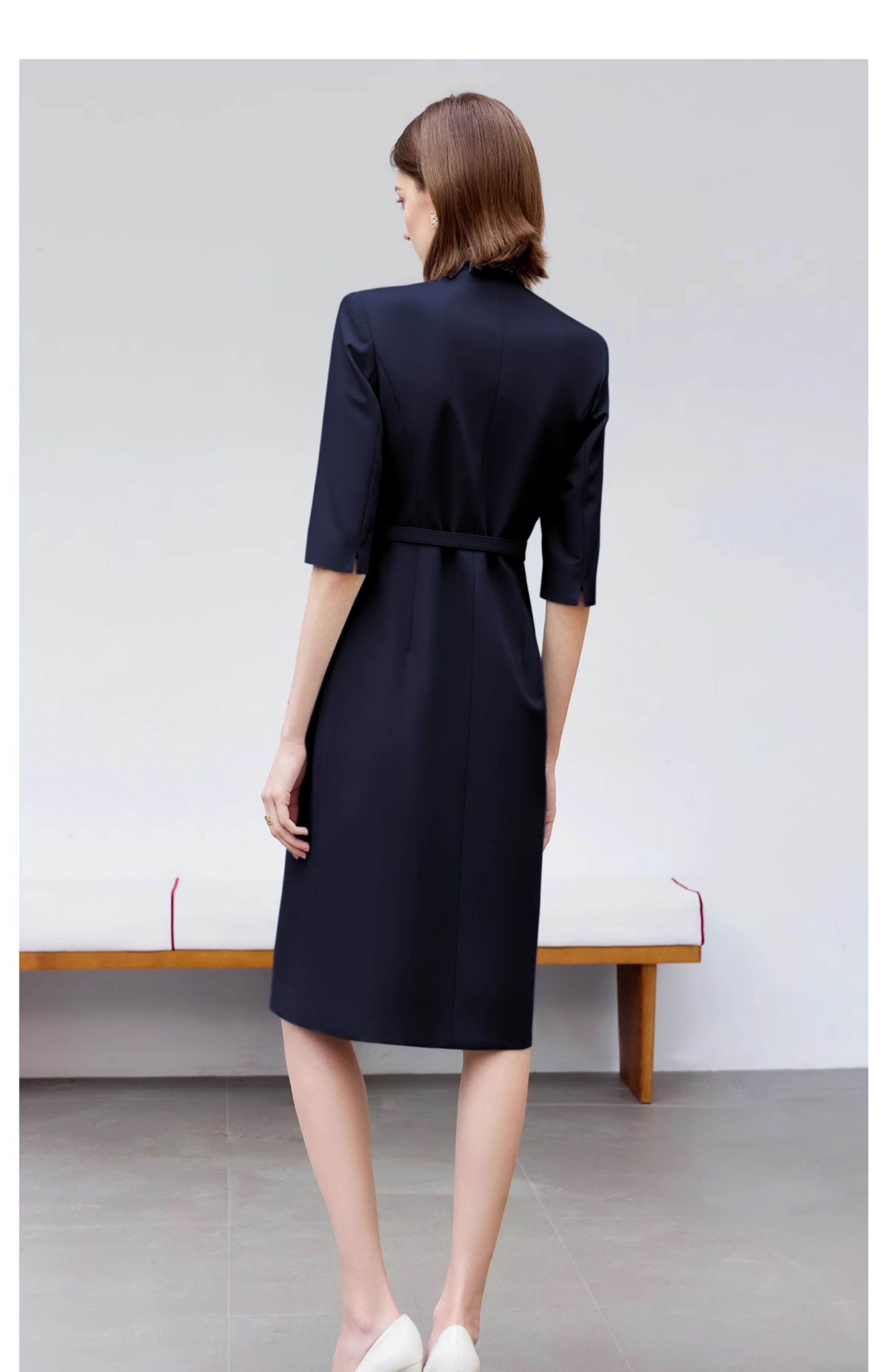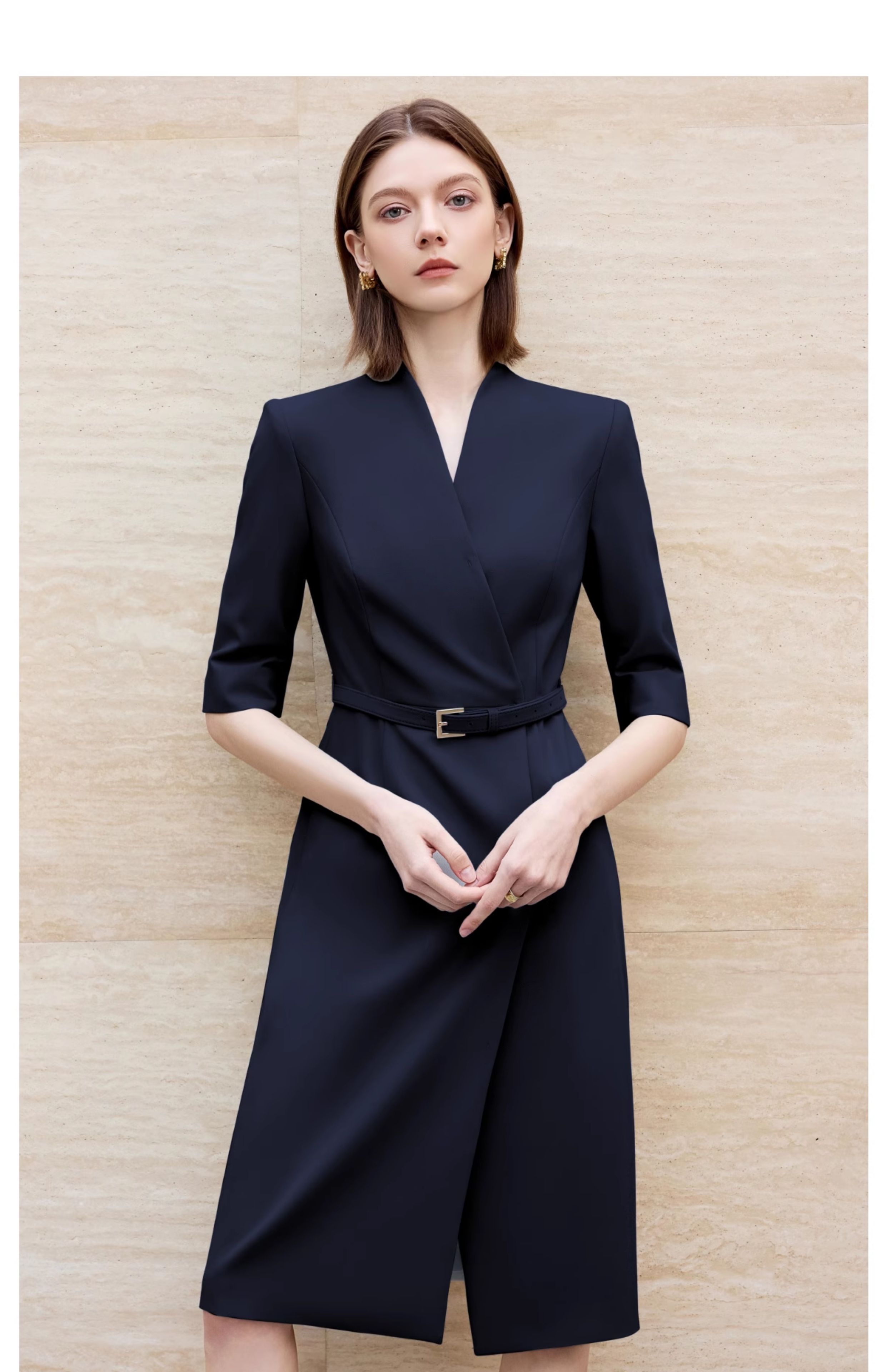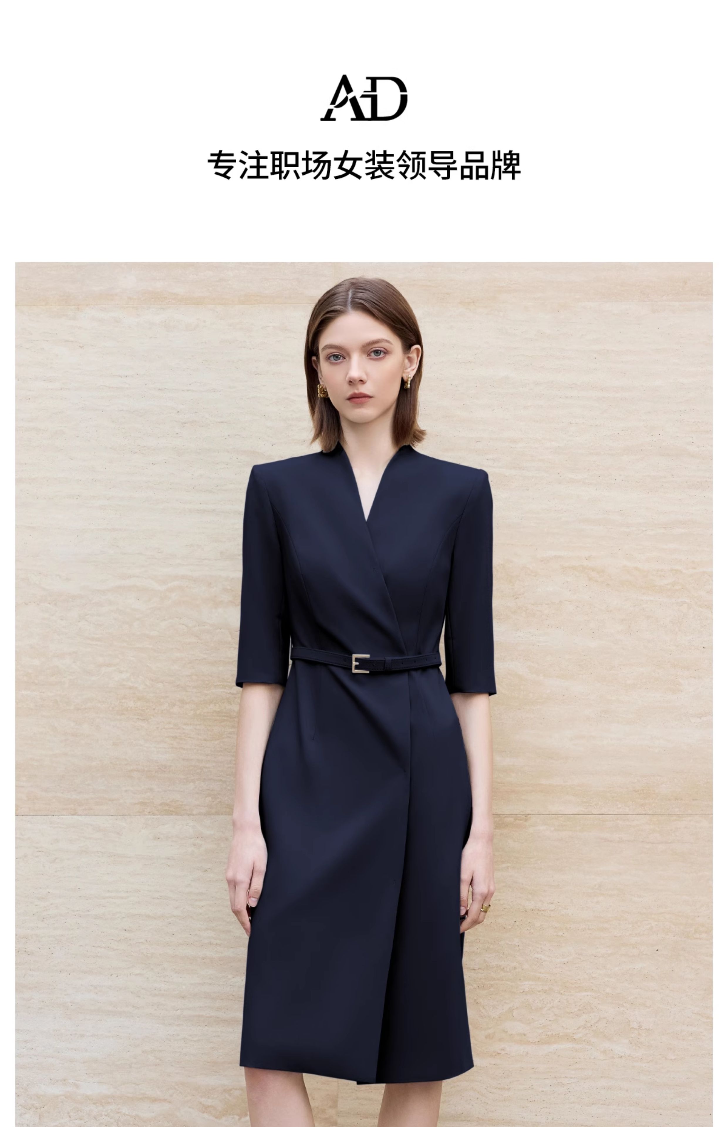 AD高级感西装连衣裙女2025新款职业装七分袖西装裙子藏青色工作服