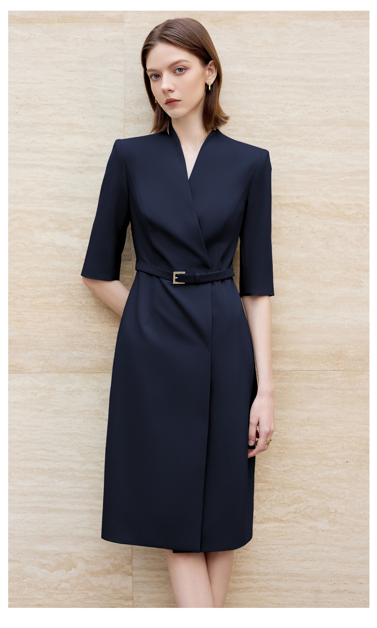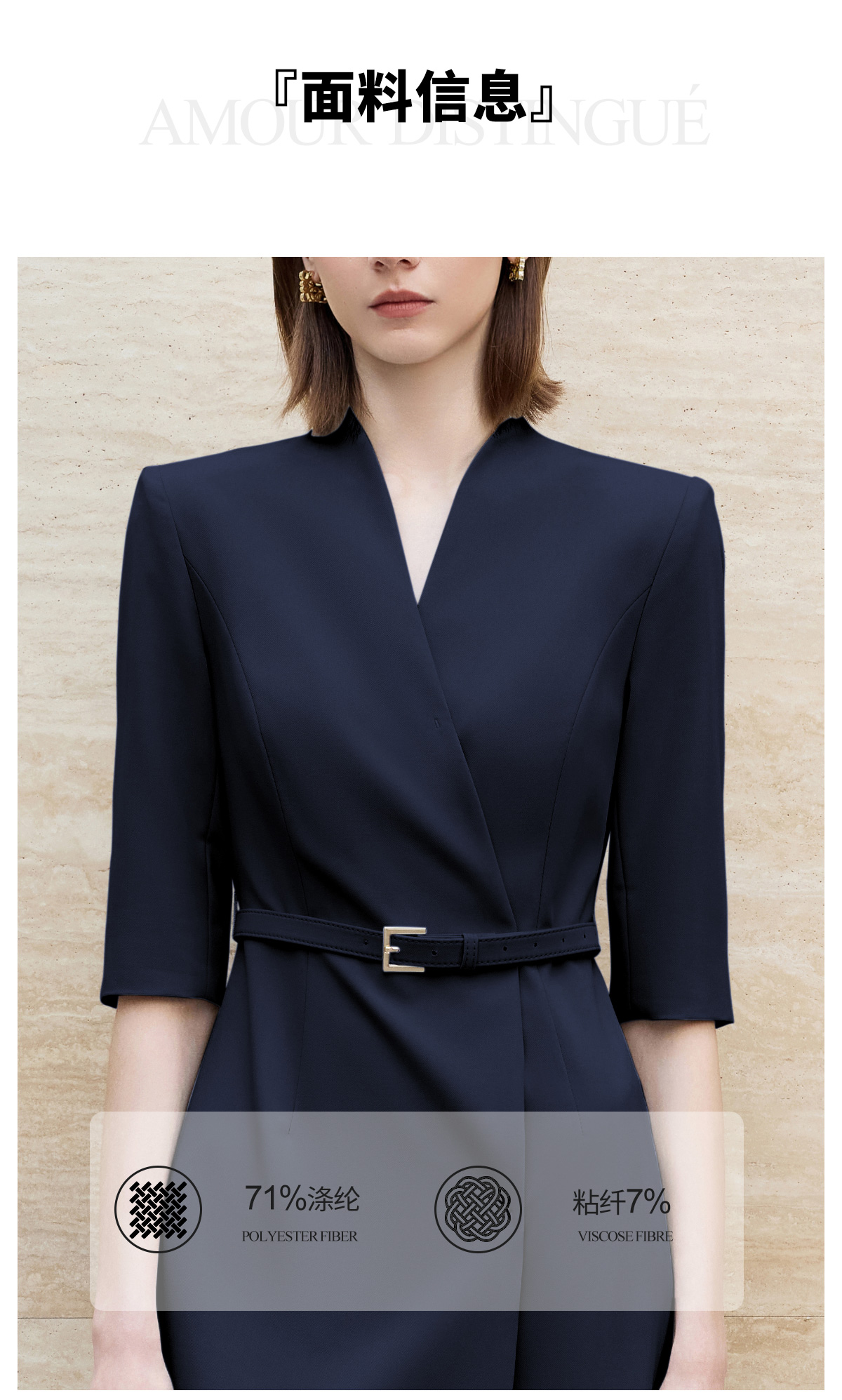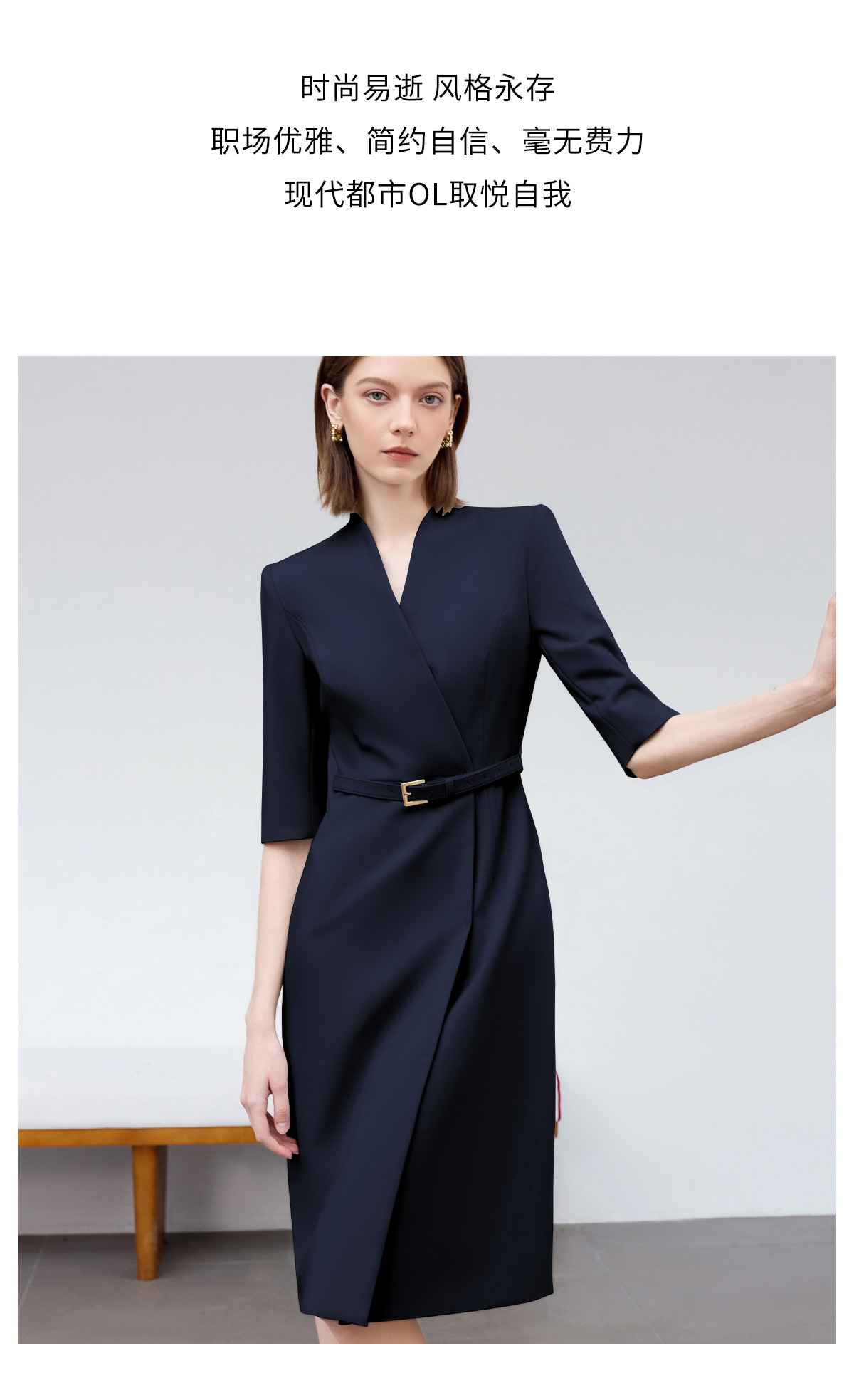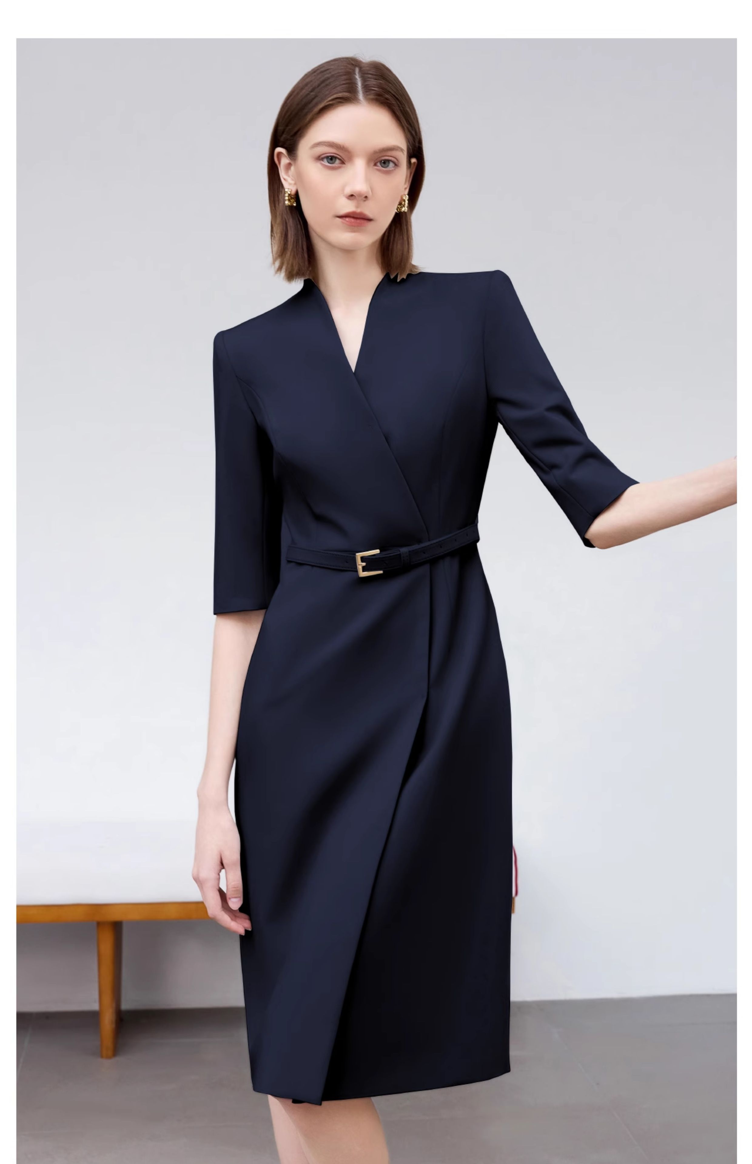 AD高级感西装连衣裙女2025新款职业装七分袖西装裙子藏青色工作服