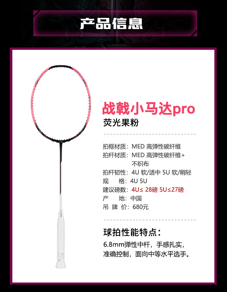 李宁LINING战戟小马达PRO全碳素进阶中端羽毛球拍