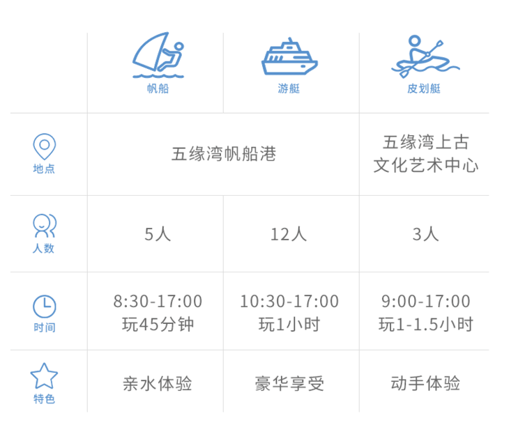 游艇:10:00-15:00,1小时1班,在14:30之前到达,稍微等候下可以出海,旺季等候时间稍微长一点。
