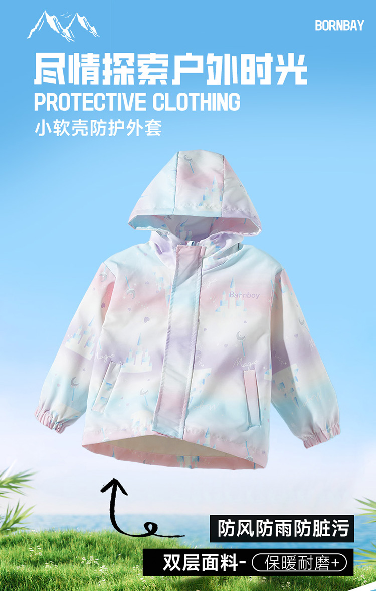贝贝怡2025春秋新款女童运动服中大童休闲外套户外踏青防风夹克风衣ZB1ES047