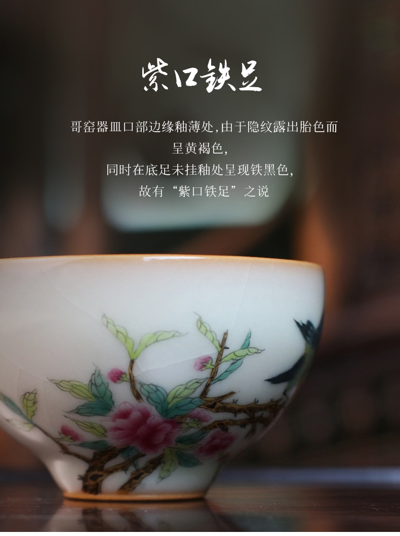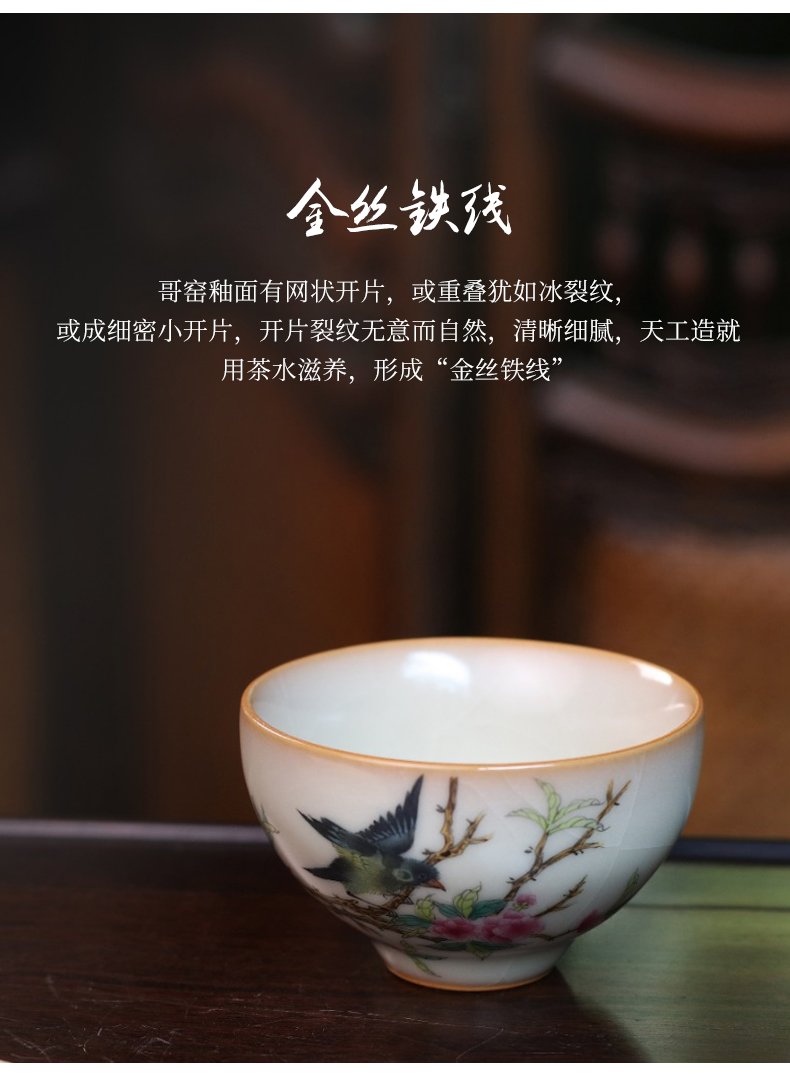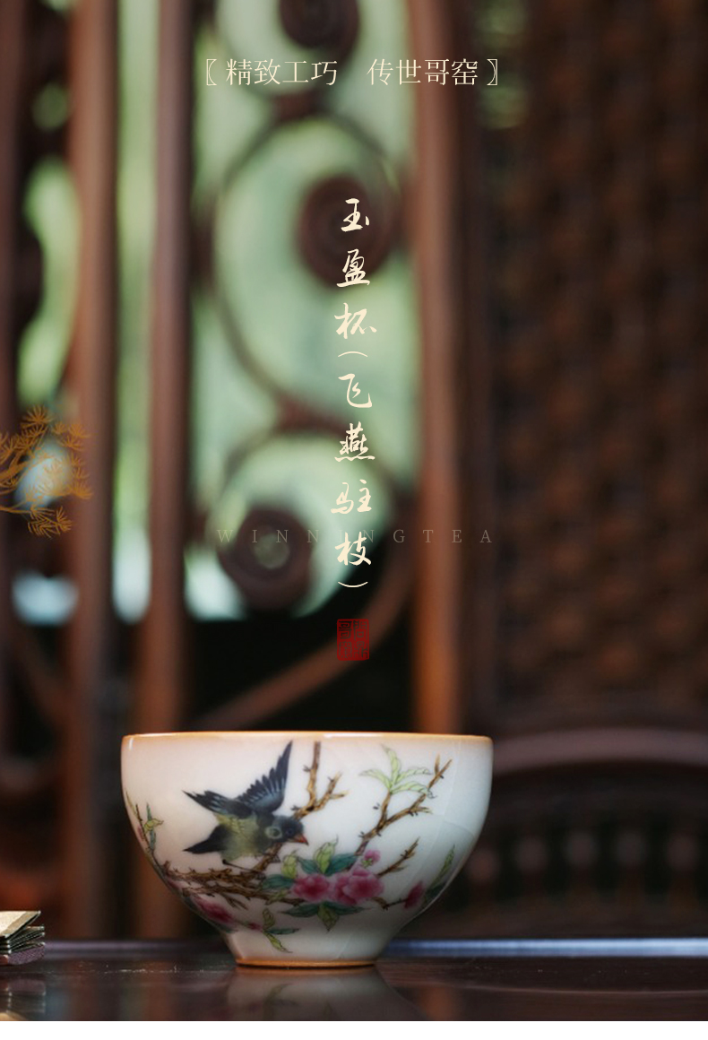 问鼎松涛彩绘哥窑玉盈杯(飞燕驻枝)